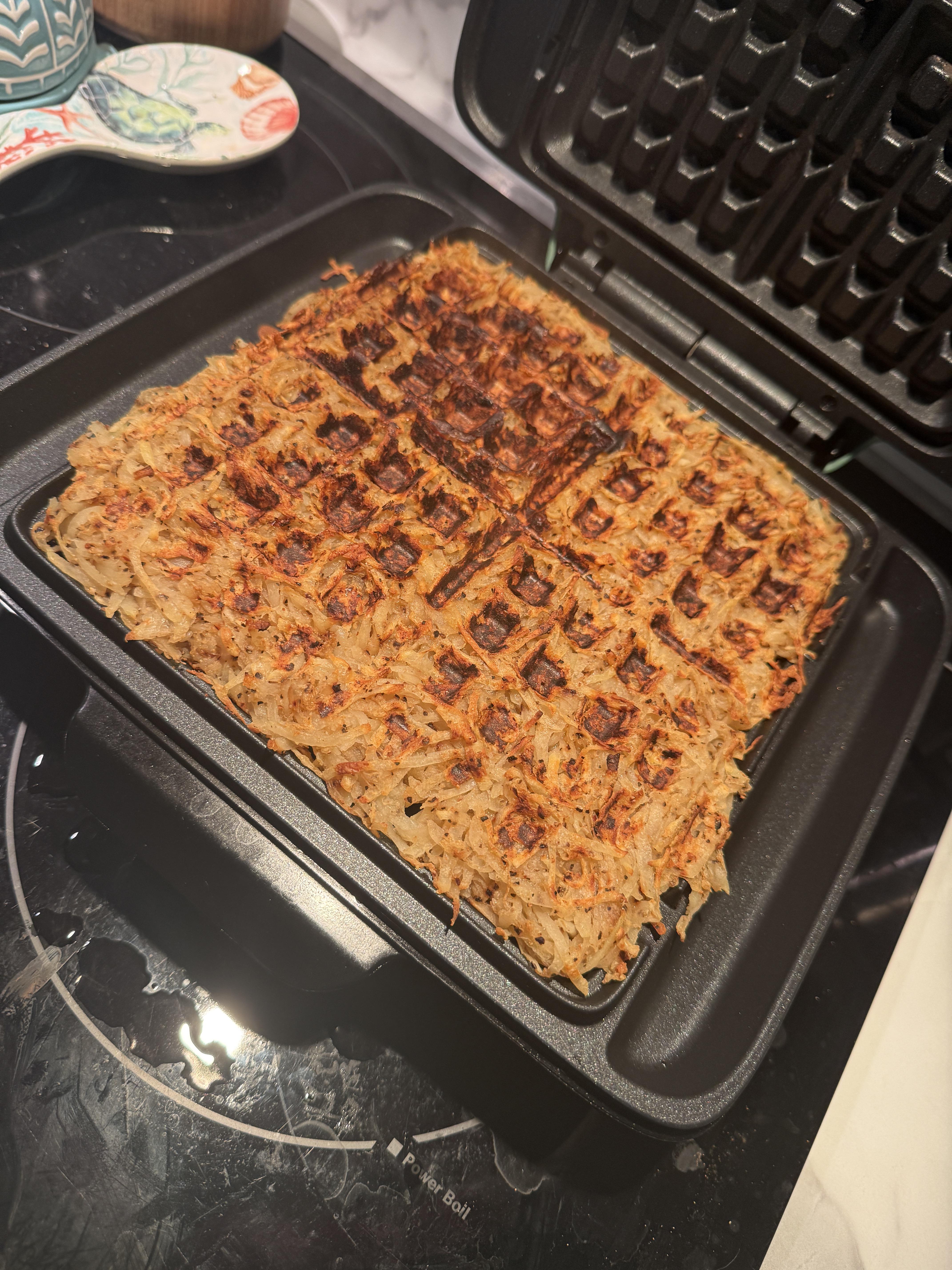 Throw in the waffle maker & cook until browned.