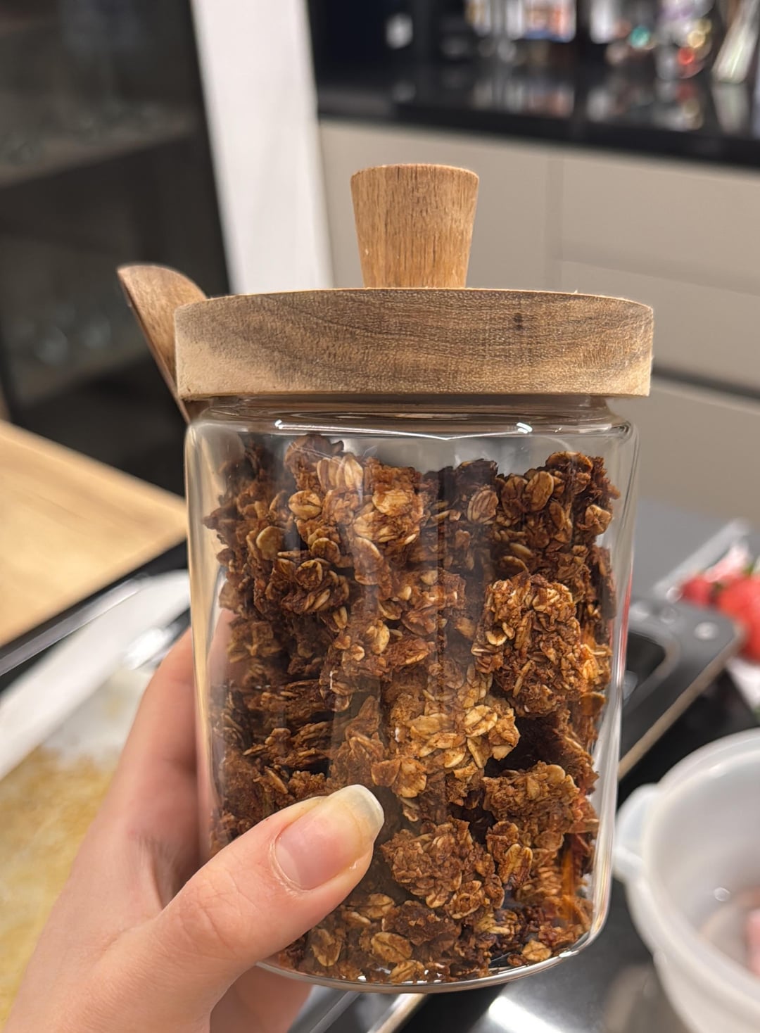 Now if you prefer clusters stir the granola halfway through and press down again and continue baking.
