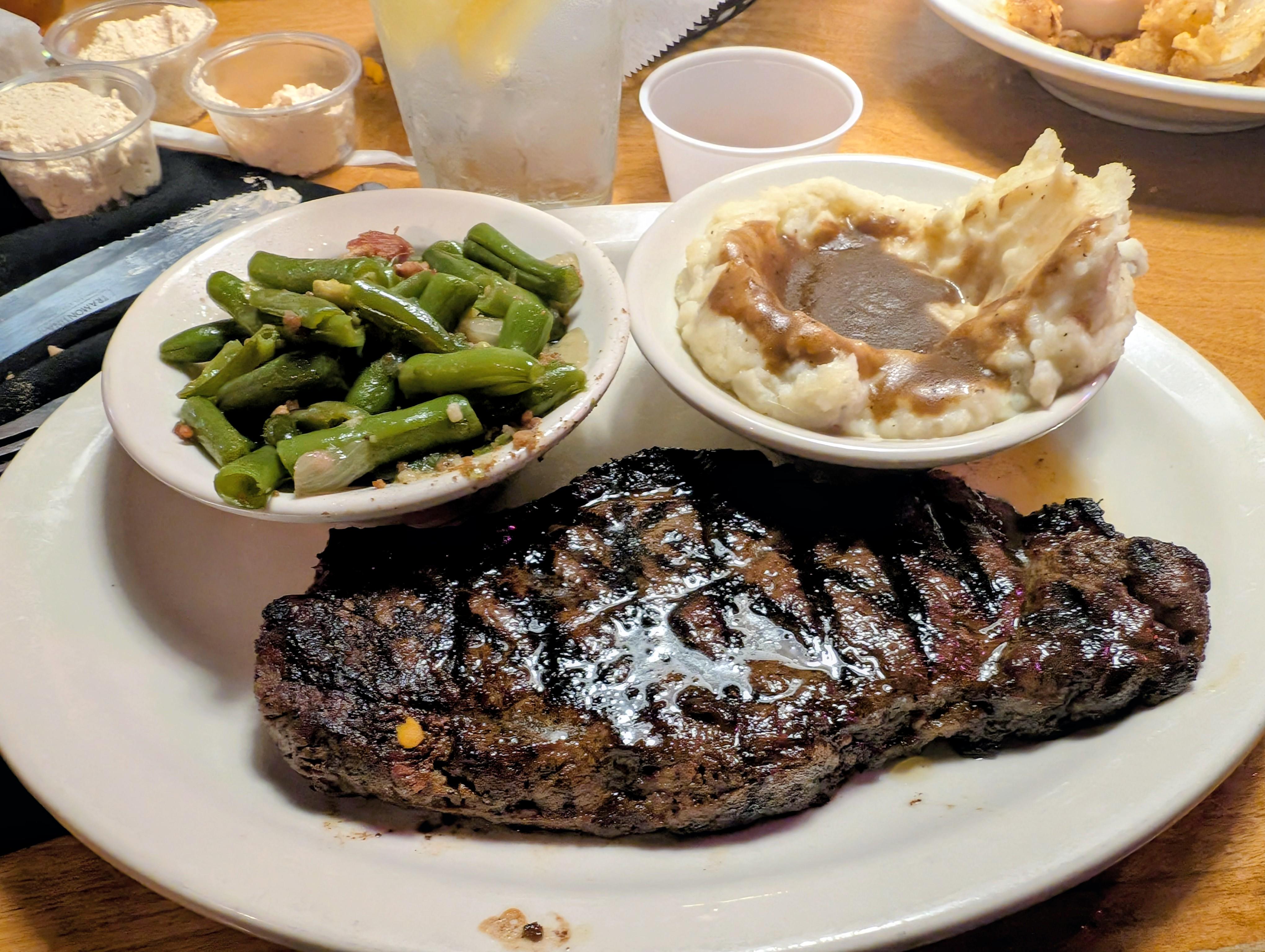 [OC] sirloin strip steak and sides for a late birthday dinner