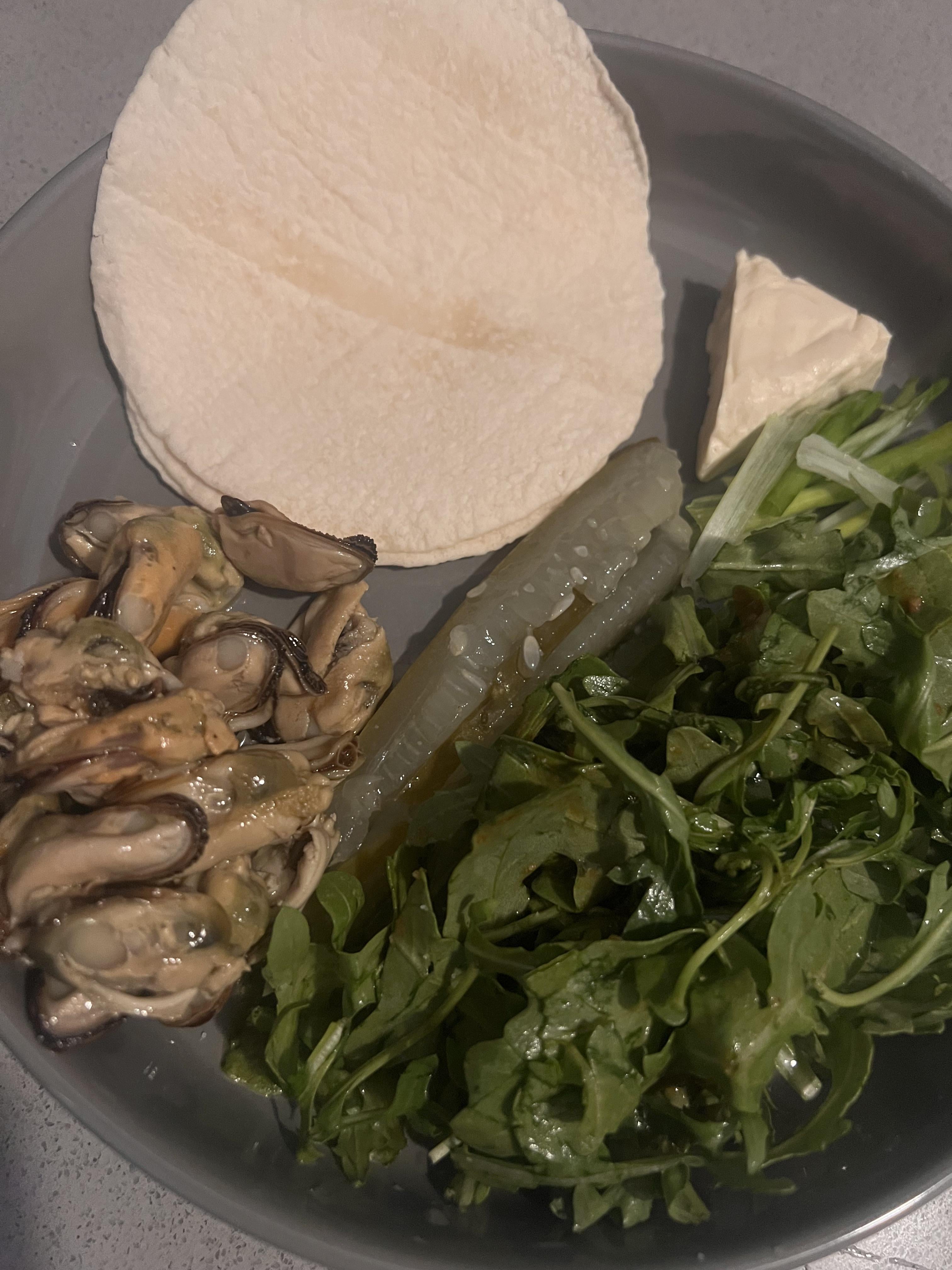 Tinned mussels, spring onion, pickles, rocket, tortilla wraps, laughing cow cheese by Old-Image5872 1200 Calorie 1200 Calorie Diet 1200 Calorie Meal Plan 1200 Kcals 1200 Kcals a day 1200 Kcals per day 1200 Kilocalorie 1200 Kilocalorie a day 1200 Kilocalorie per day 1200isplenty