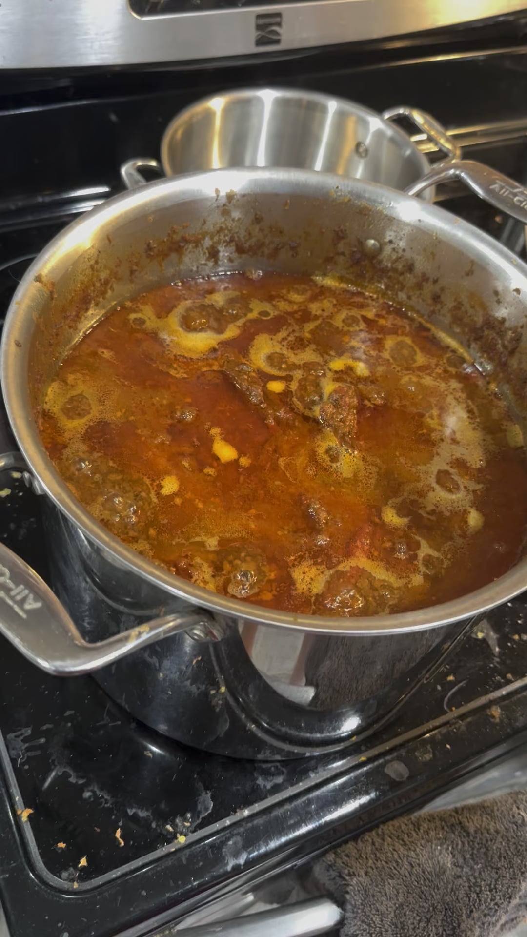 Onion carrots celery garlic through a meat grinder. A lot more than you think (veg mostly water). Add to rendered fat in pot. Salt. Cook until water is gone and veg starts to caramelize. Once water gone, Stir constantly