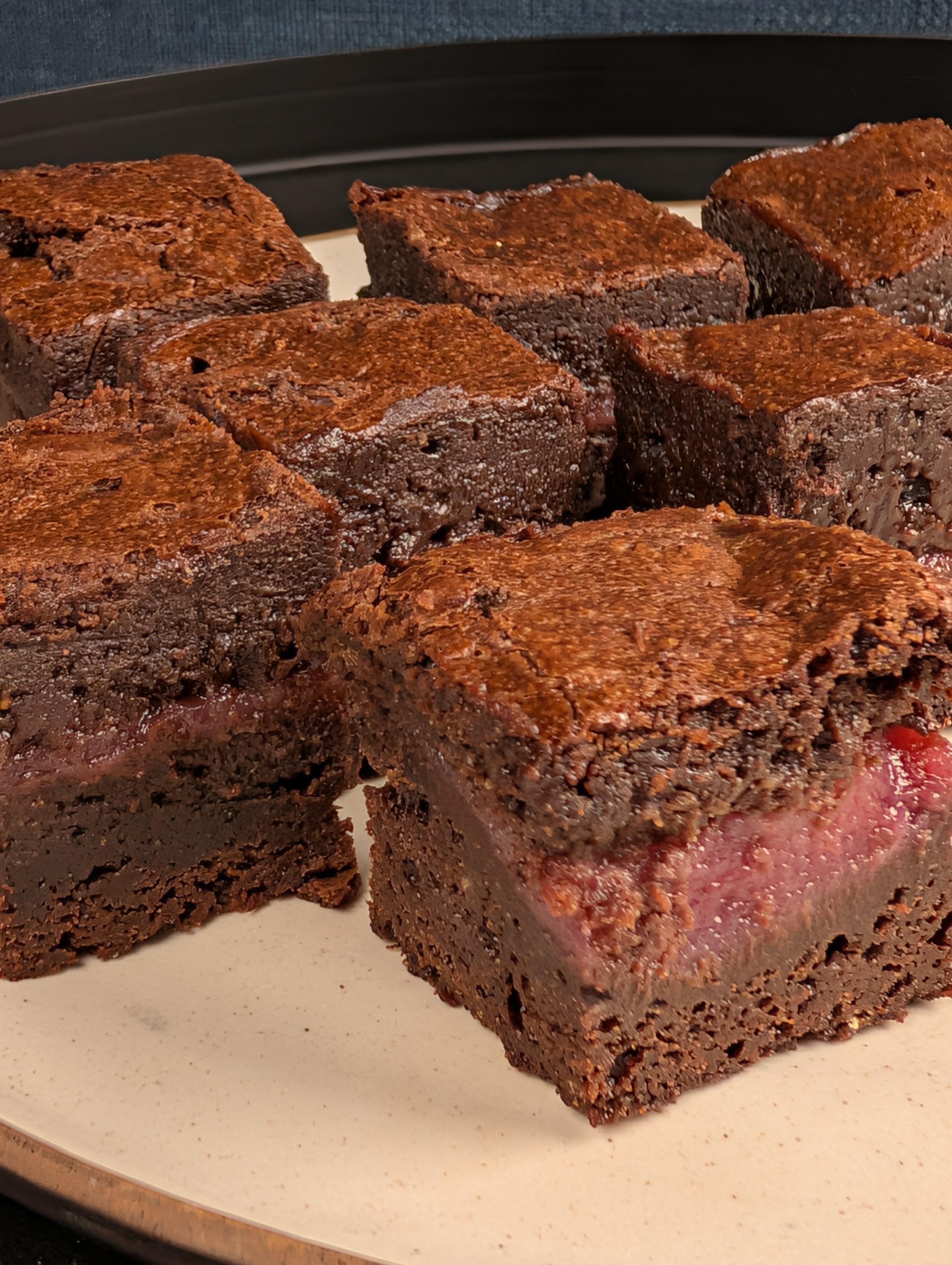 Love the flavor combo, always wanted to see a brownie, layer of raspberry, then a brownie lattice on top like you see on pies. I have no idea how you’d do that but that’s my dream yall. Anyways. Mmm.