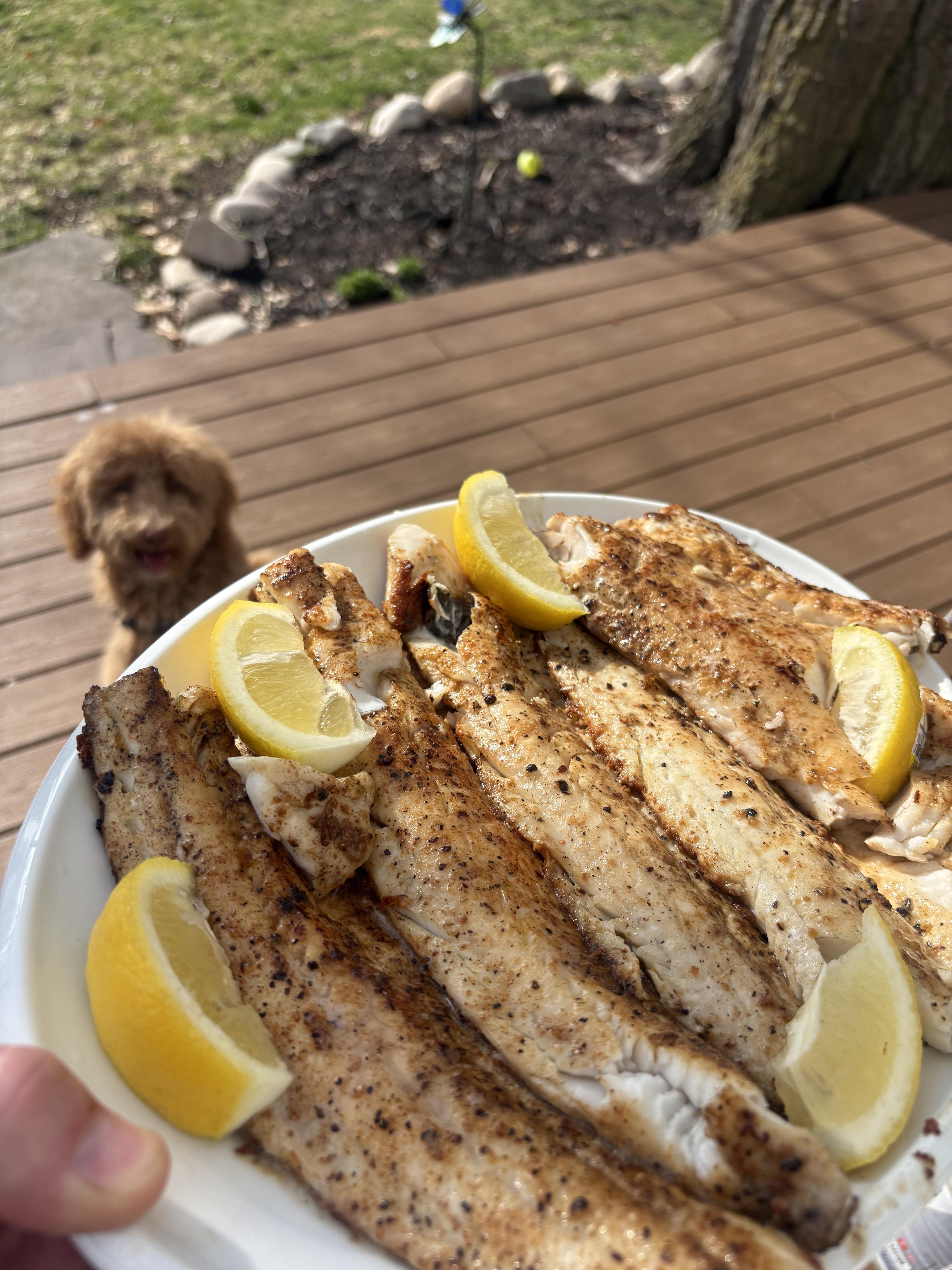 [homemade] Fresh walleye with lemon pepper.