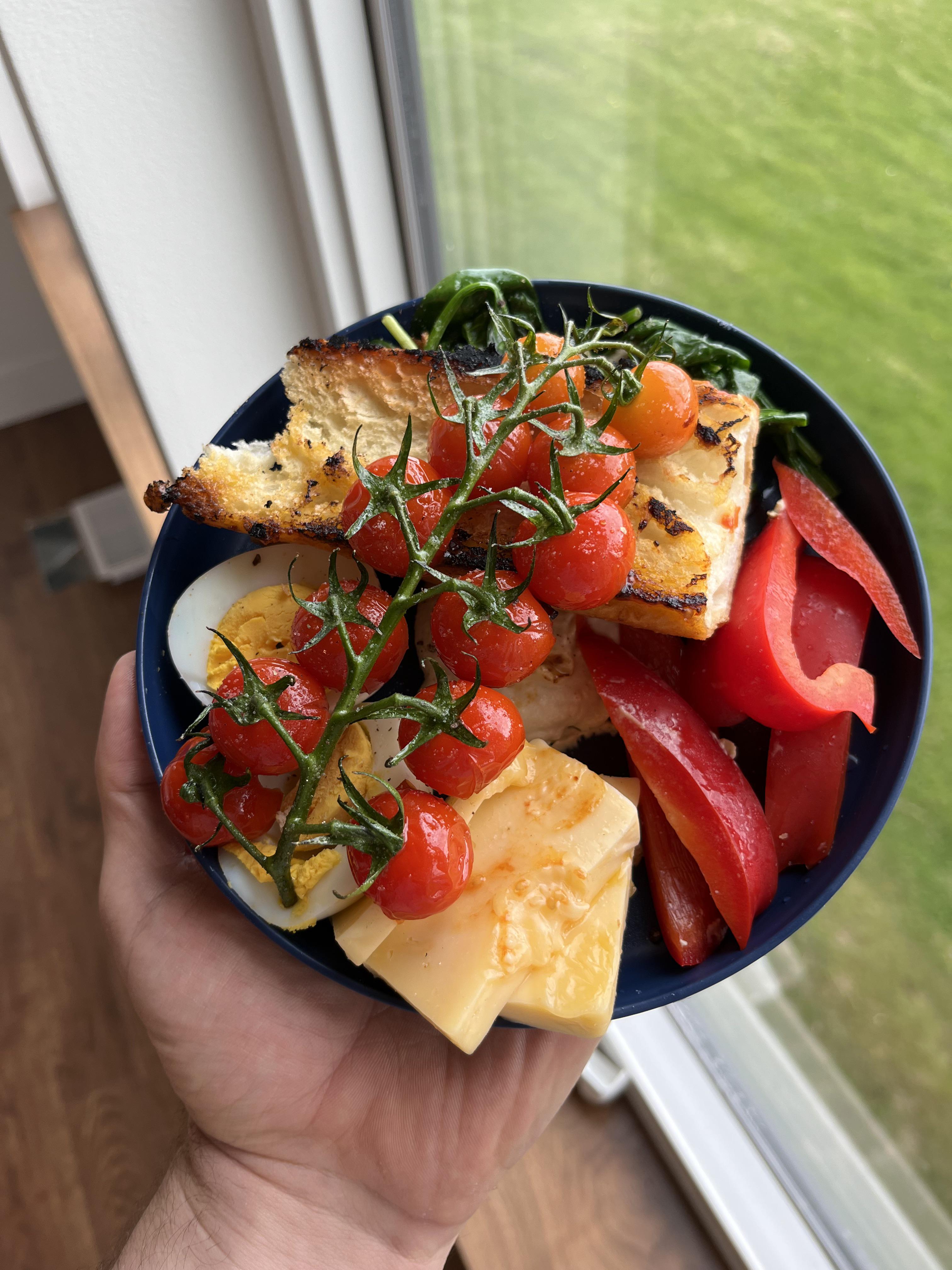 Made a super simple lunch today of a hard boiled egg, a few slices of havarti cheese, raw bell peppers, seared tomatoes, sautéed spinach, a chunk of baguette, and a tbsp of hummus. by JustHere4TheZipLines 1200 Calorie 1200 Calorie Diet 1200 Calorie Meal Plan 1200 Kcals 1200 Kcals a day 1200 Kcals per day 1200 Kilocalorie 1200 Kilocalorie a day 1200 Kilocalorie per day 1200isplenty