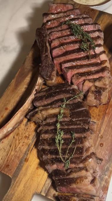 Beef flank-style ribs marinated in a zesty orange-chili soy sauce and subsequently grilled alongside garlic-infused soy sauce green beans with white sticky rice.