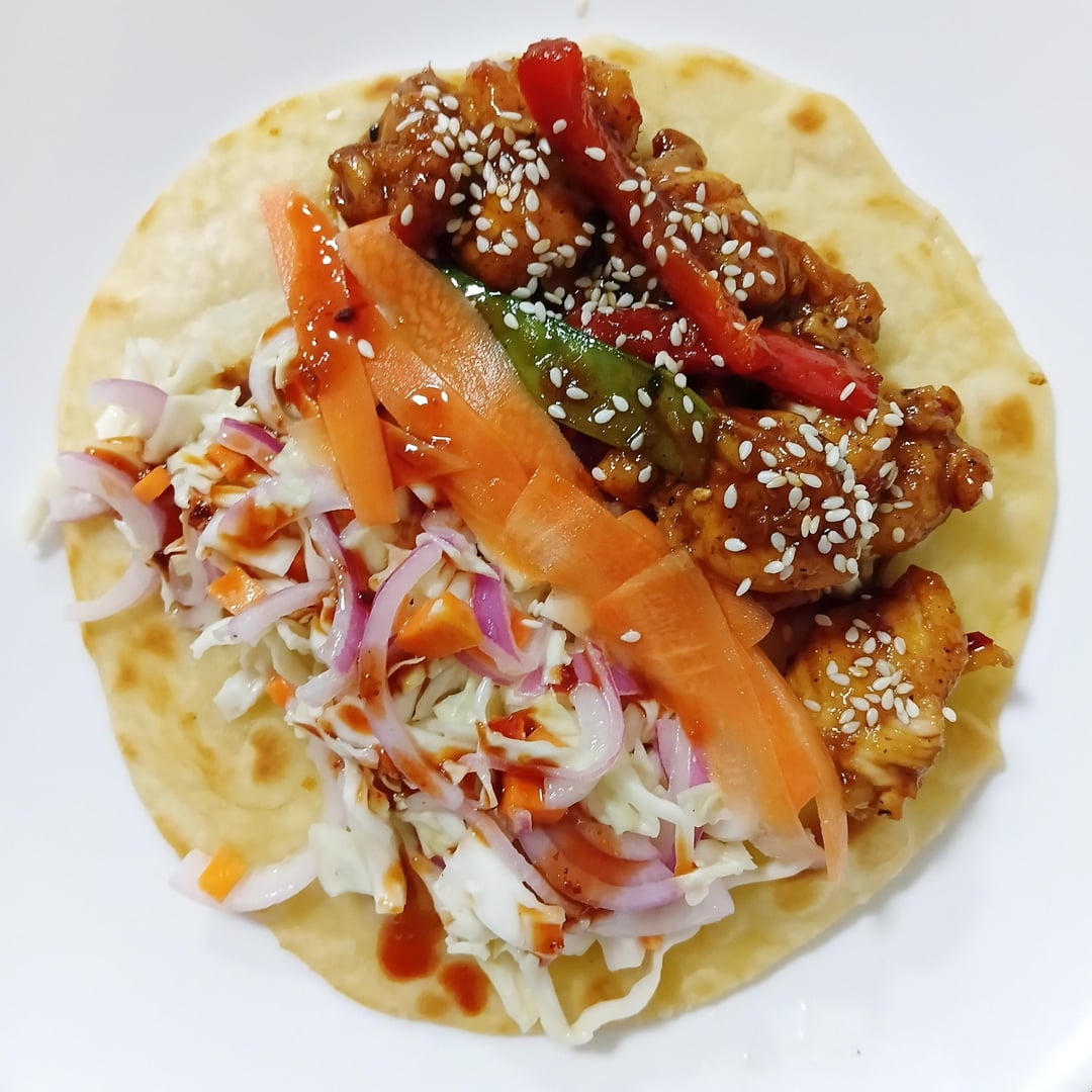 We made an easy chicken stir-fry, some colourful coleslaw (there wasn’t any purple cabbage), and use some of the honey soy sauce I made last night. We always have pickled carrots and that worked very well. The tortillas is an easy recipe We saw on YouTube, very quick and tasty. It’s quite a quick dinner to make, I’d say less than an hour. The tenderness of the chicken, crunchy coleslaw, and the spicy sauce made this a light dinner yet filling.