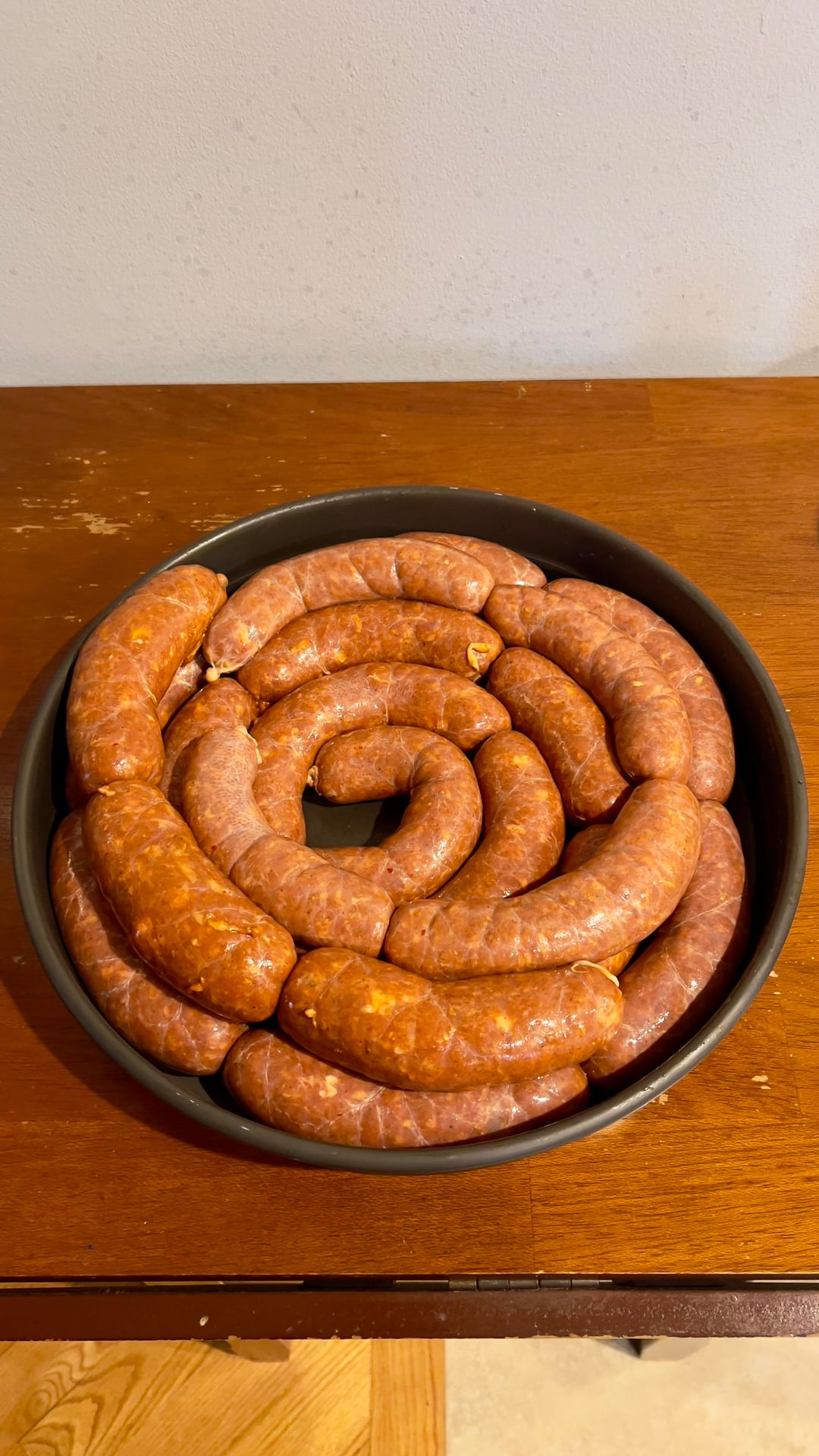 Made the marinade with guajillos, anchos, achiote paste, pineapple juice, apple cider vinegar, garlic, cumin, oregano, clove, salt, and pepper. Marinated the pork for 24hrs. Cased them last night, let them set up overnight, cooked them over some charcoal today.