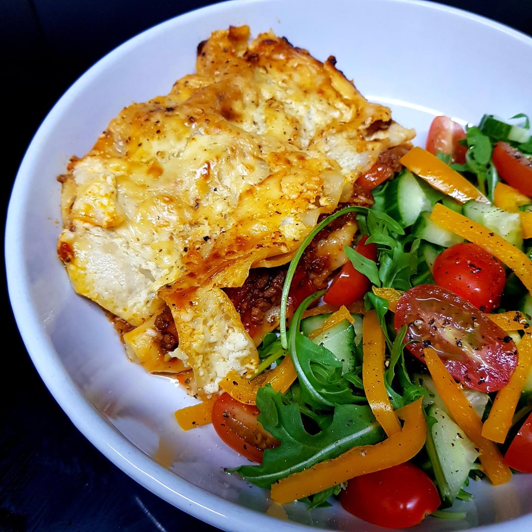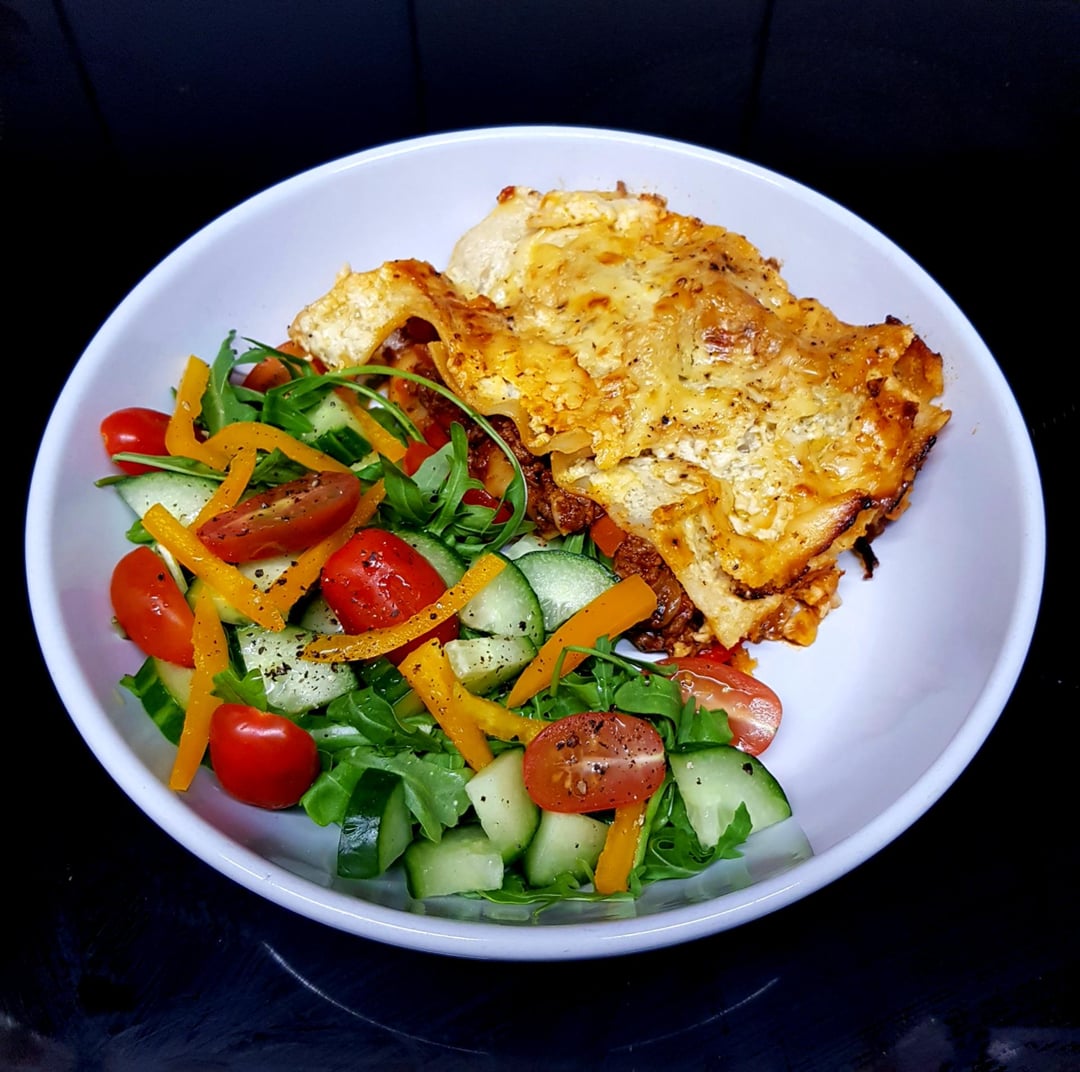 Lasagne for 2, Apparently 😬🐷 Topped with Egg Bechemel and Three Cheeses. Rocket Salad on the Side. by pink_flamingo2003 Dinner Tonight Tonight's Dinner