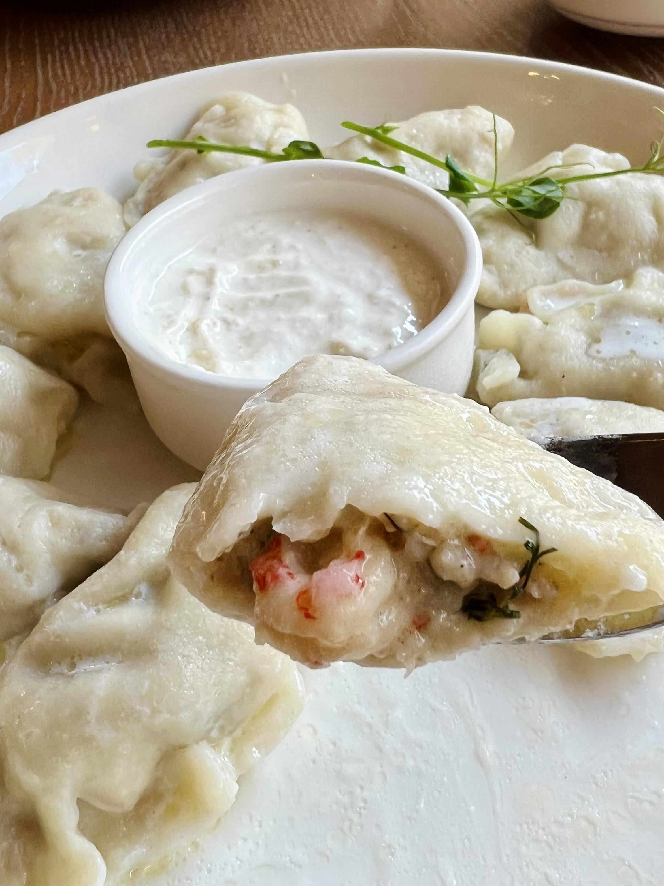 [I ate] Pierogis filled with Crawfish, Bacon, & Barley in Gdansk Poland