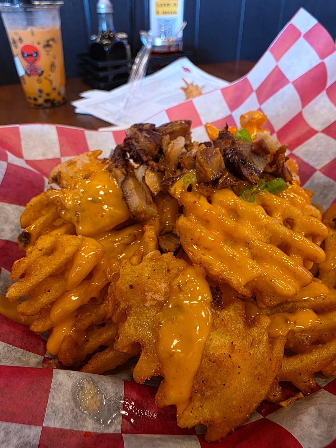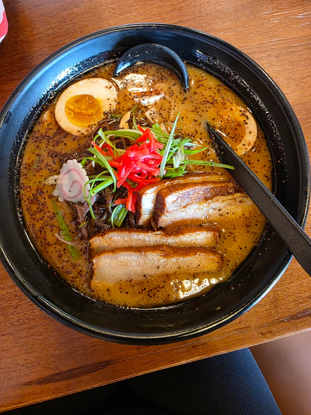 [I Ate] Black Garlic Ramen and Rayaki Fries with Mixed Chasu, Spicy Mayo, Garlic Aioli, Fried Onions, Massage & Scallions by TheRealSim1 Food