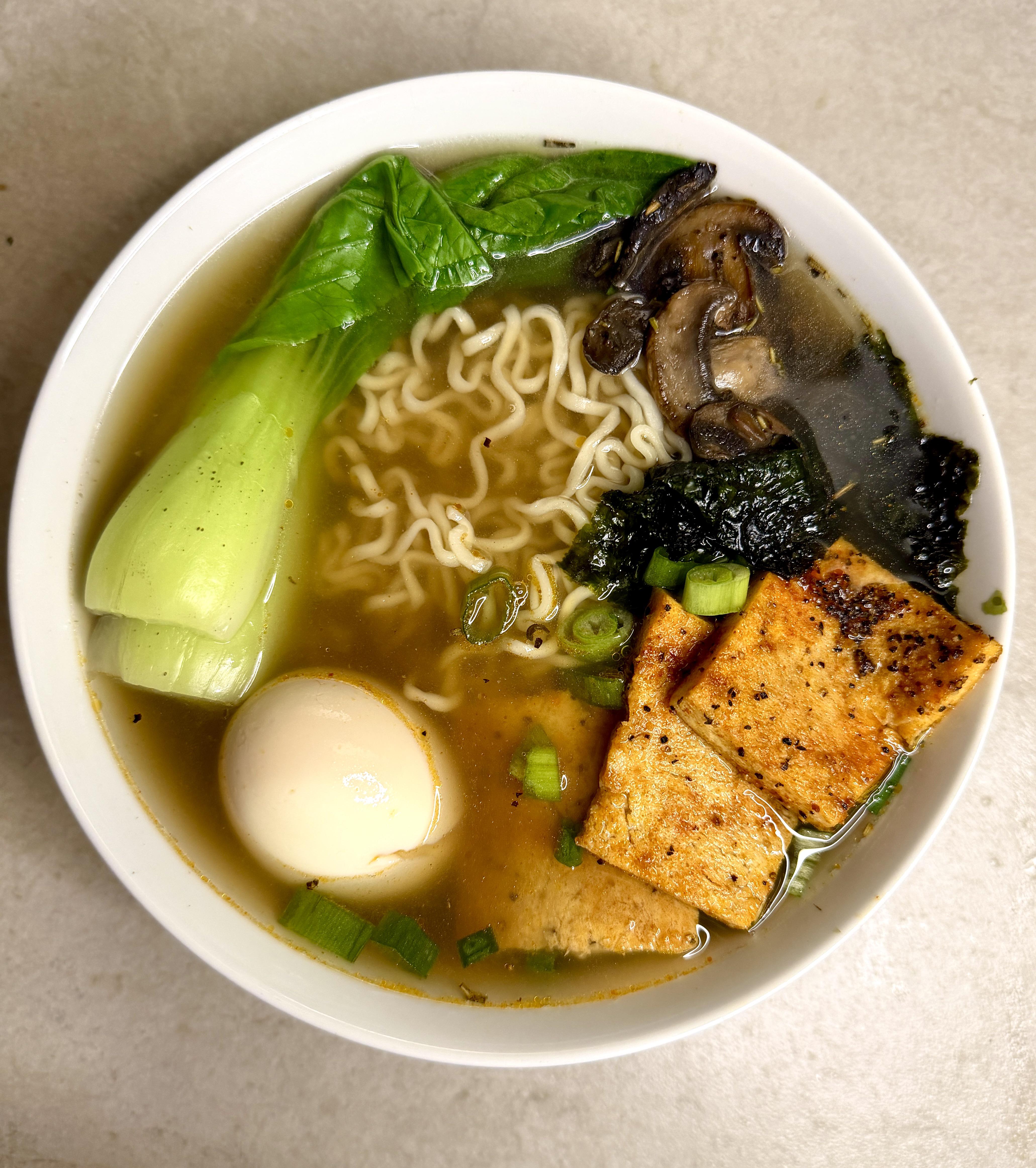 Homemade Miso Fish Broth Ramen. Crispy mushrooms, fried tofu, bok choy,nori,green onion and Ajitama. by mimmsypoo Dinner Tonight Tonight's Dinner