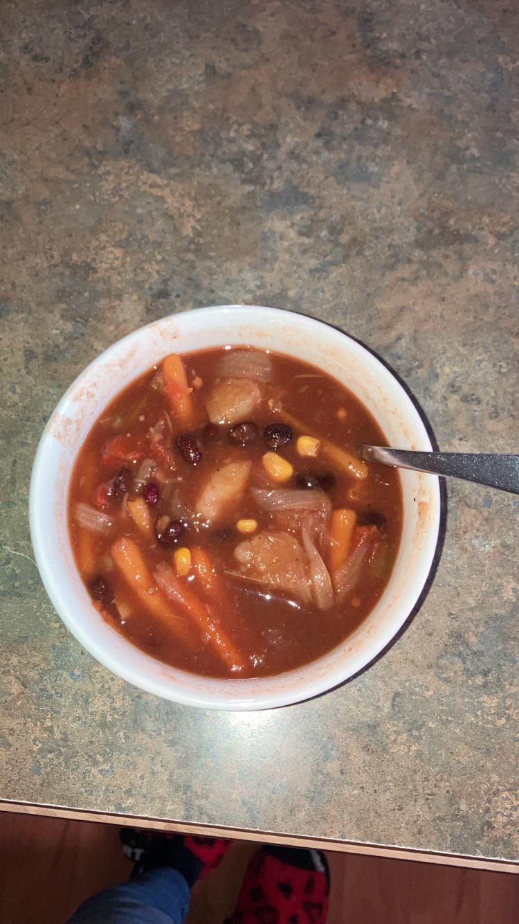 My sister coined the term “Field Soup.” She said it’s because everything in it comes from a field. It’s honestly delicious. My dad made it. It’s vegan!