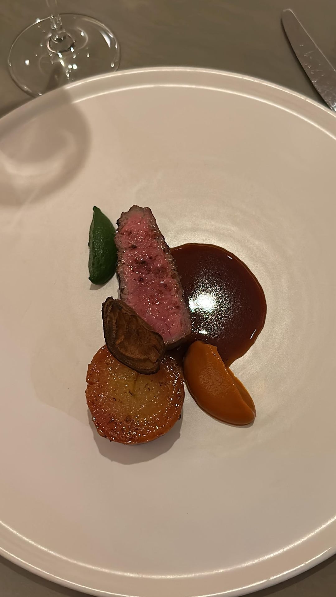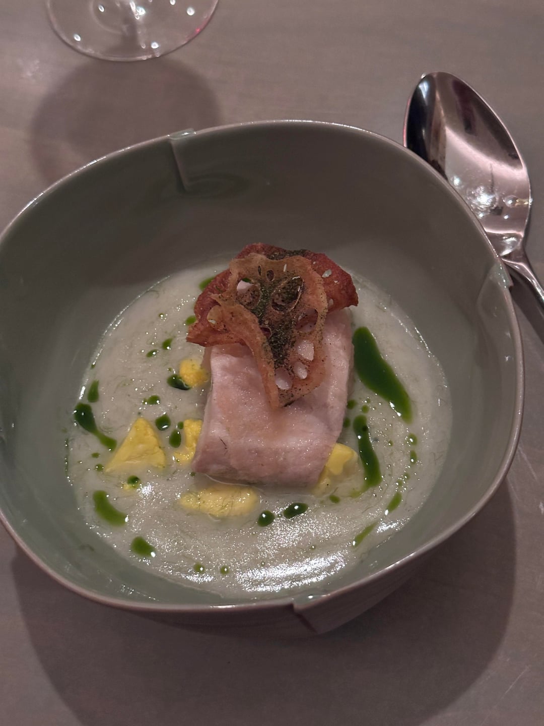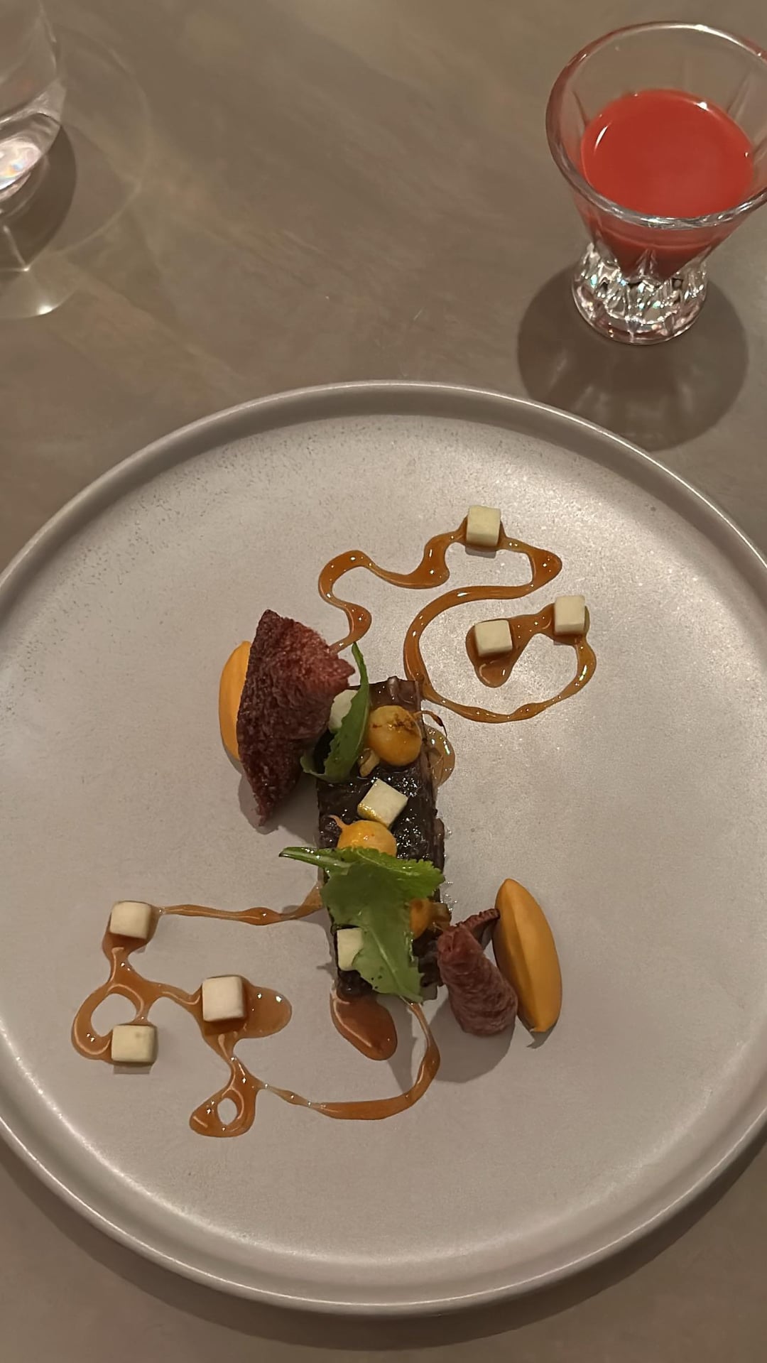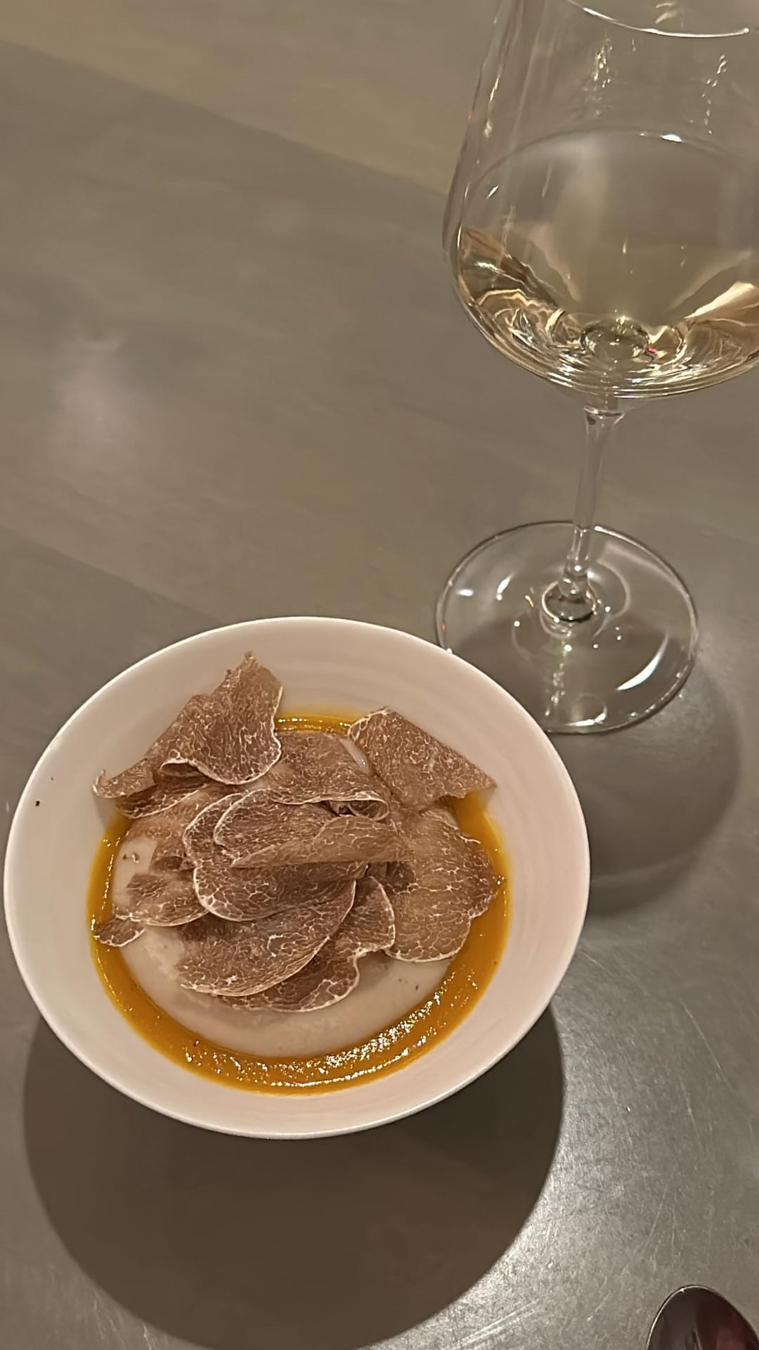 • Hobak Juk (Kabocha, Chili crisp, and chestnut cream) paired with an additional white truffle seasonal supplement. Warm hug in the mouth – I'm not sure how they made it but it definitely was slightly aerated yet it didn't lose any richness.