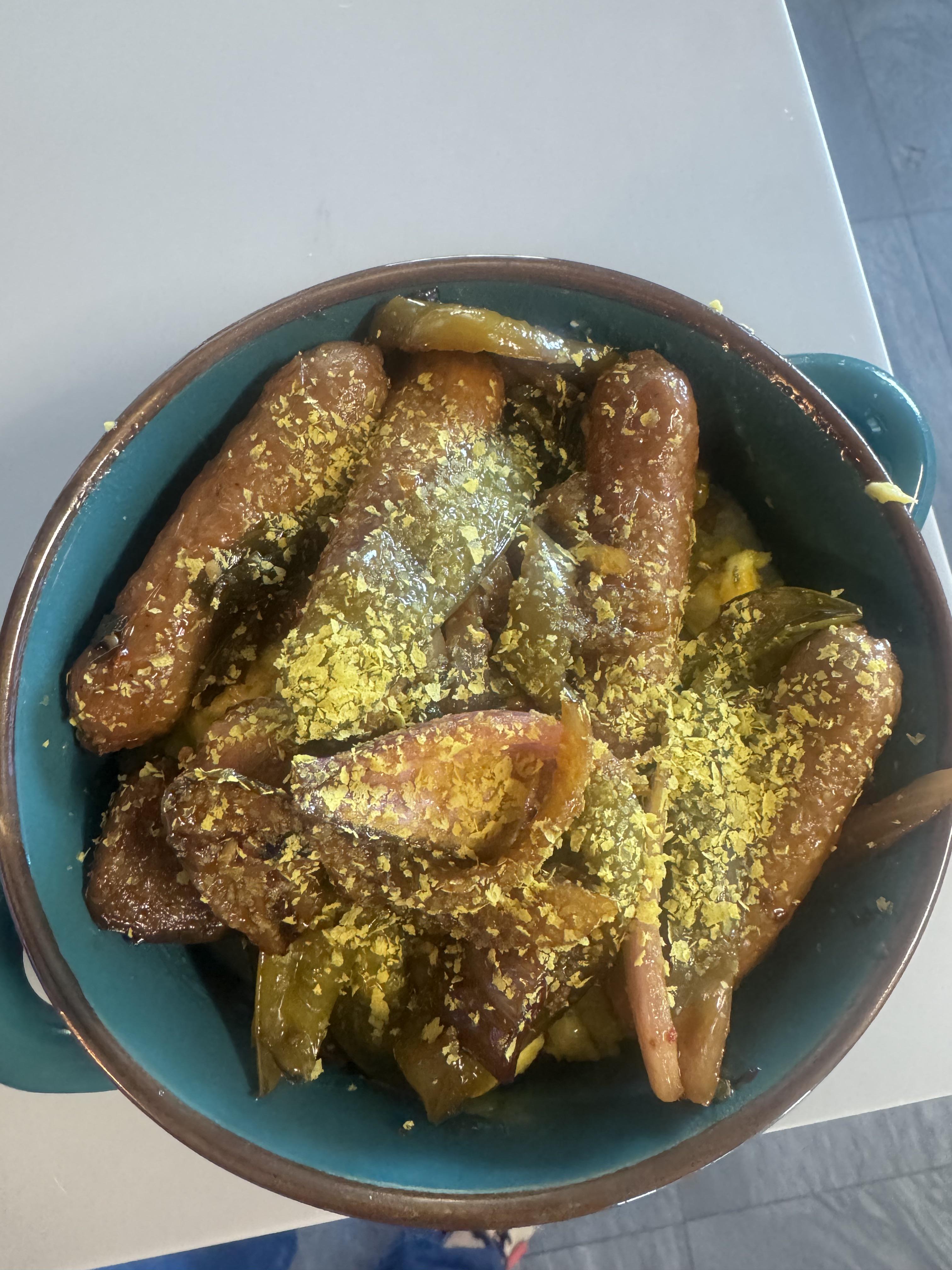Well, I’m from the south so this breakfast bowl has a base of grits , vegan eggs then topped with beyond Italian sausage, peppers ,sautéed eggplant, onions peas, hot garlic sauce with nutritional yeast sprinkled on the top by kushunokami Vegan Food Vegan Food Porn