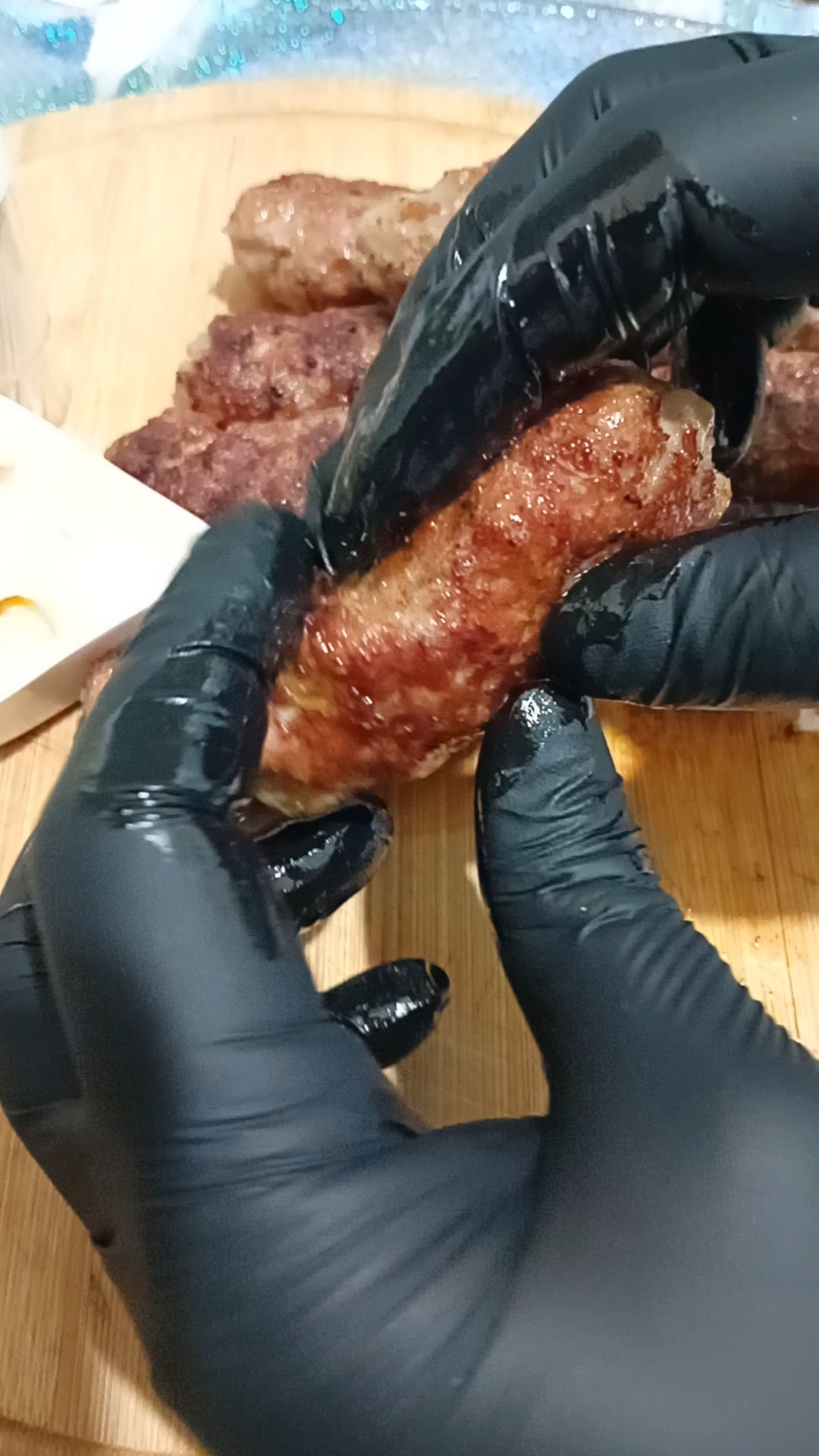 Squeezing a sausage is not the way to show off food my guy…