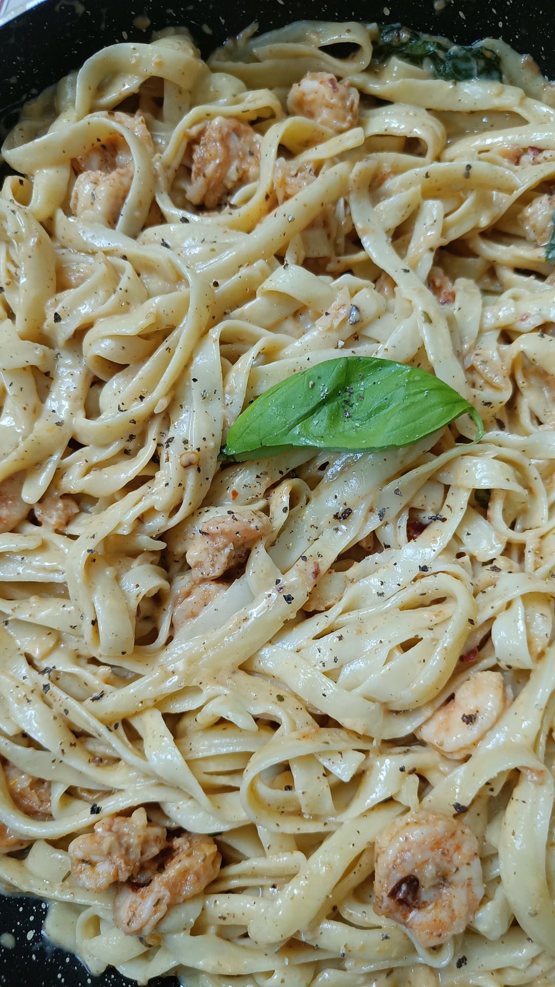 Tonight’s dinner (had a mad couple of weeks at work. Finally got around to cooking a nice dinner after ages) Creamy garlic shrimp pasta by uob22 Dinner Tonight Tonight's Dinner