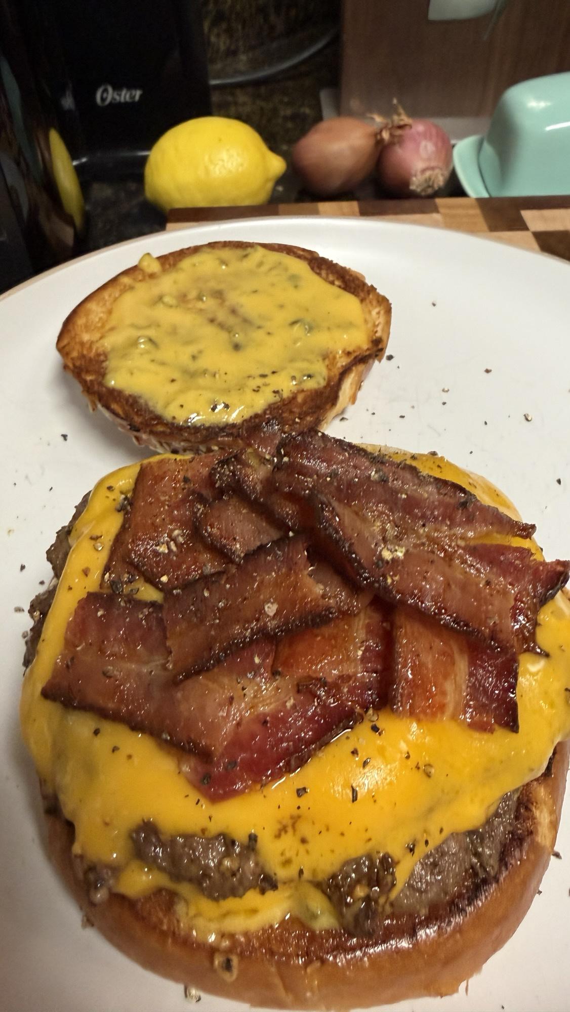 Excellent bacon-placement. One of my biggest burger pet-peeves is when they put two slices in a cross.