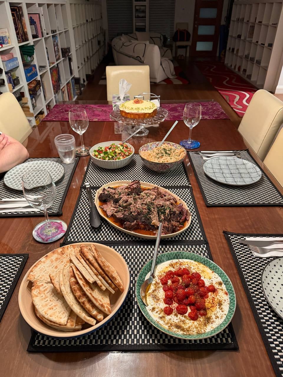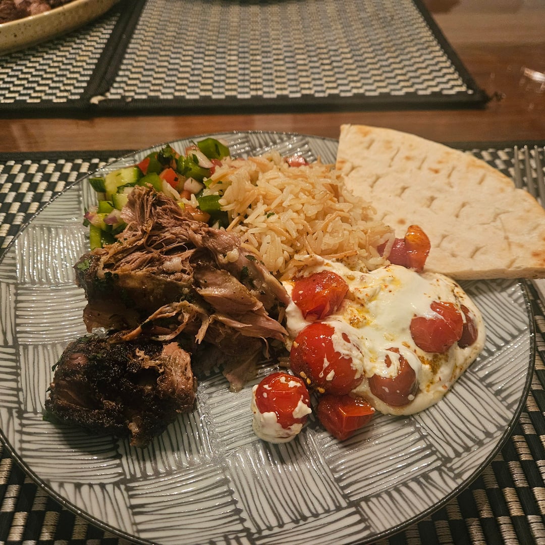 A full Turkish feast family dinner; Whipped fetta, Baharat lamb shoulder, Şehriyeli Pilav, Çoban salatası and Revani for dessert 🇹🇷