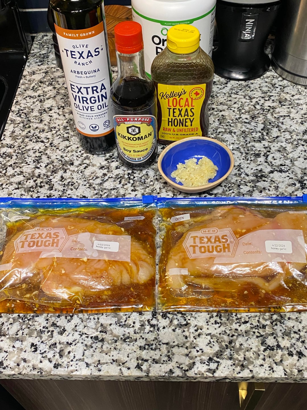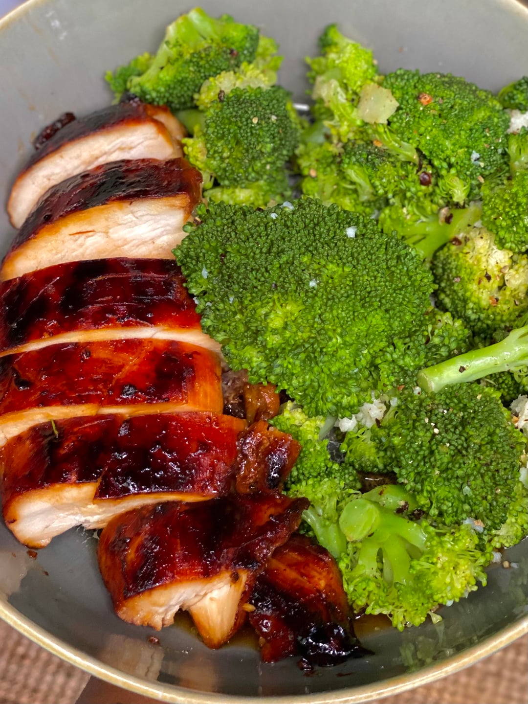 Grilled chicken breast with carrot, broccoli, red cabbage, kale, and brussels sprouts on a bed of garlic noodles. Drizzled it with teriyaki sauce. It was bomb dot com