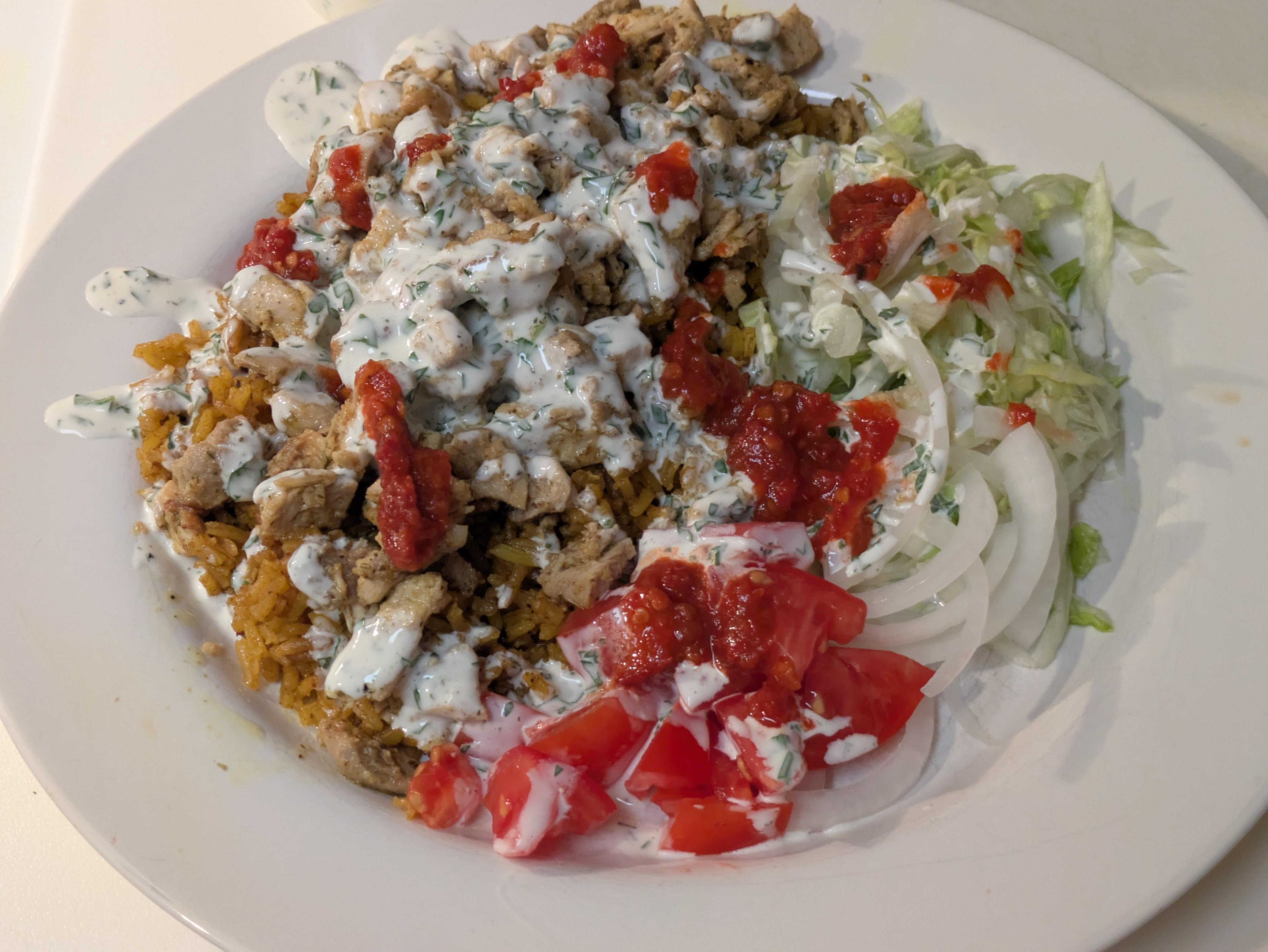 I've never had halal cart chicken and rice before, but decided to make it after watching a YouTube video.