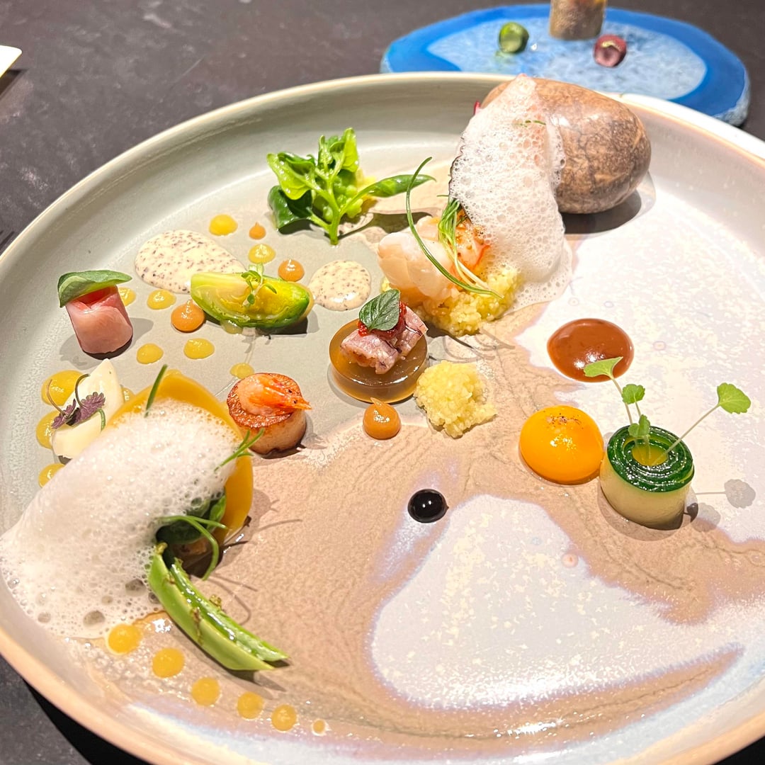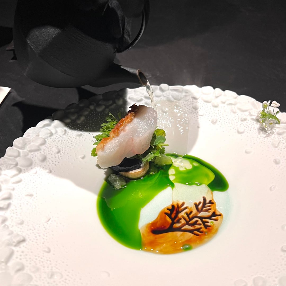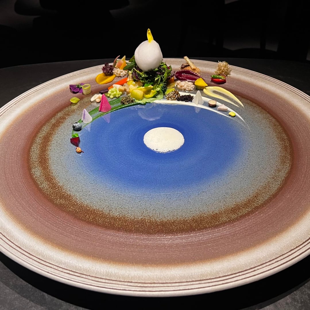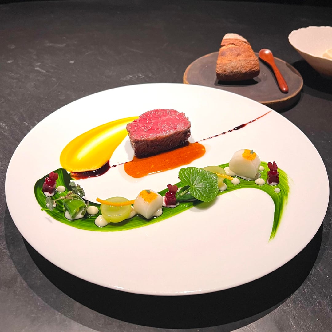 Chef Yoneda Hajime is an engineer-turned-chef who has trained at Michel Bras Toya in Hokkaido, and the influence clearly showed. Most dishes included a plethora of vegetables intricately plated with colourful sauces, peaking with a pièce de résistance called Chikyū (Planet Earth) which was an elevated gargouille made with over one hundred ingredients and served on a gargantuan plate that could have been a lazy Susan if it had wheels. Taste of everything was as good as they looked, fresh and complex flavours with impeccable seasoning and perfect temperature. Some dishes came with a little theatrical display too which was entertaining enough without becoming overly distracting.