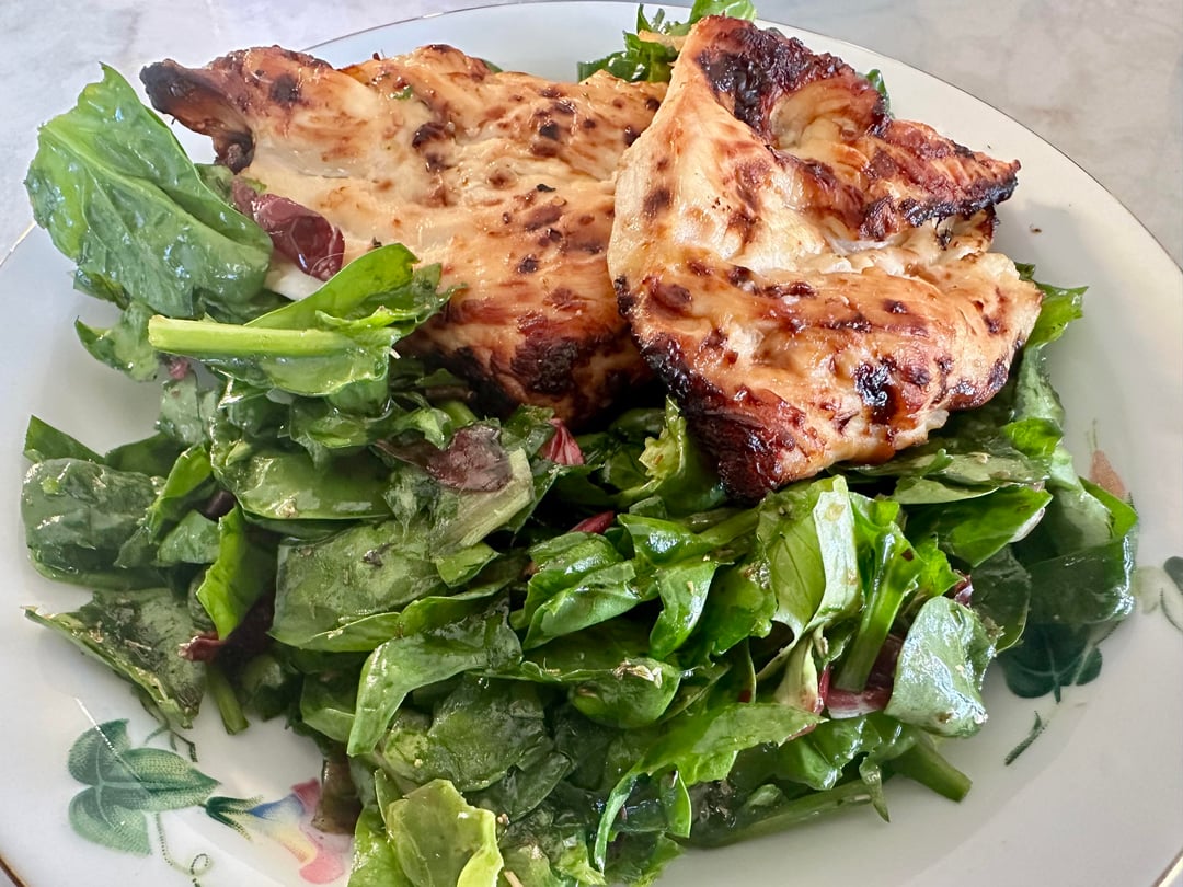 Grilled chicken with baby spinach and spring mix salad.