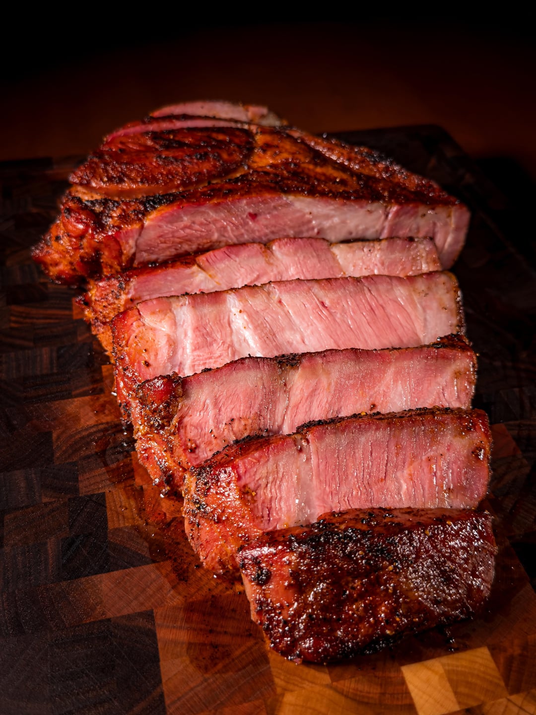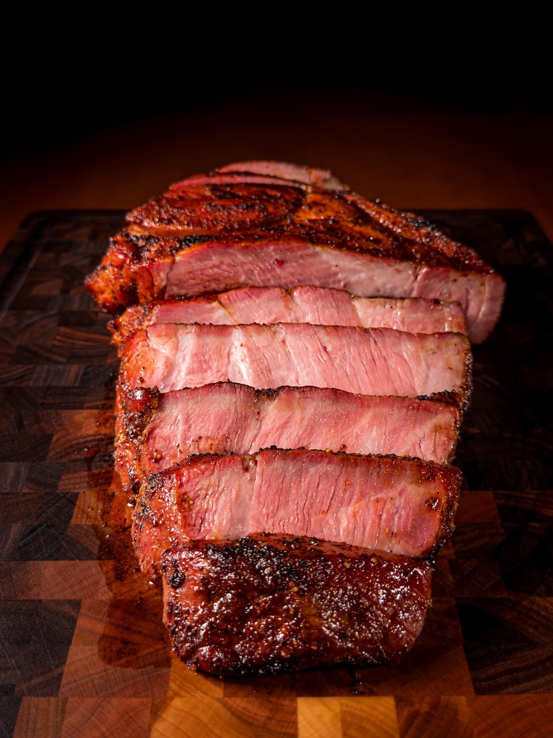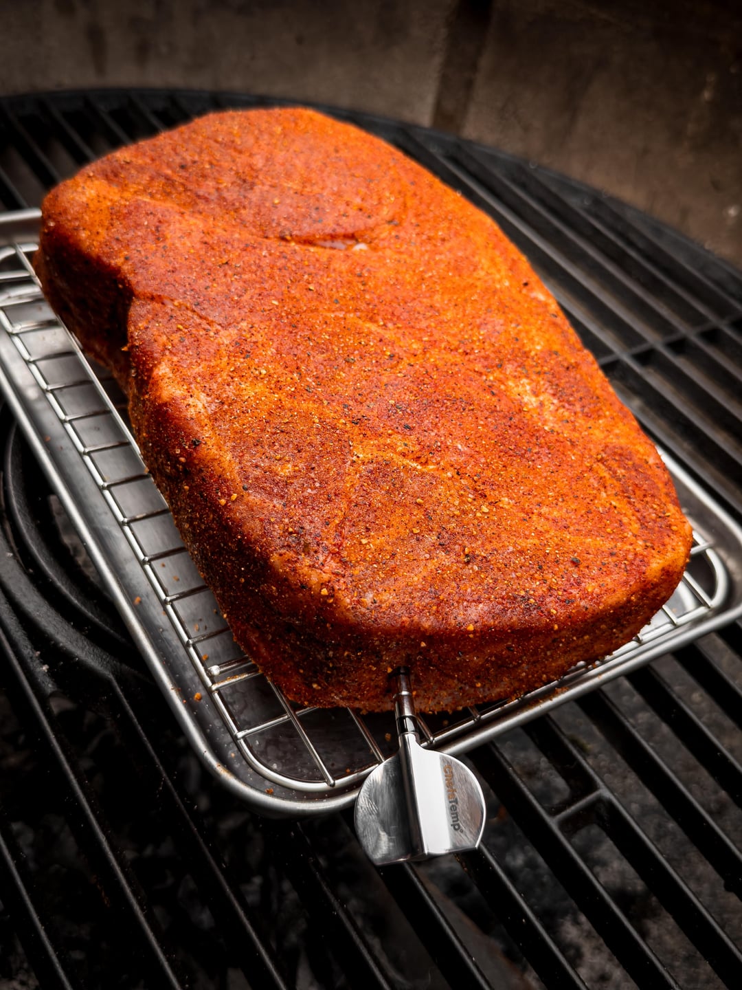 Smoked at 225F just shy of 2 hours to a an internal temperature of 120F. Rested for about 25 minutes to let the internal temp settle while the charcoal was getting up to temp in the chimney. Seared for 4 minutes, flipping every 30 seconds. Peak internal temperature while resting was 138-140F.