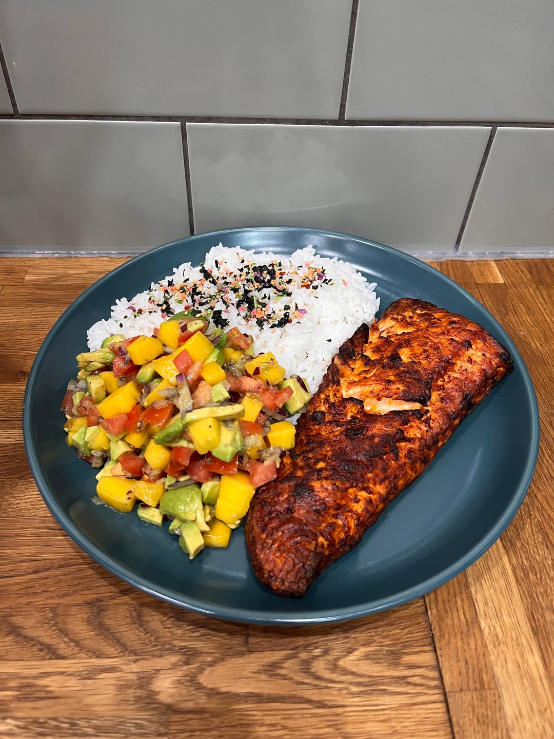 * air fried salmon with mango avocado salsa