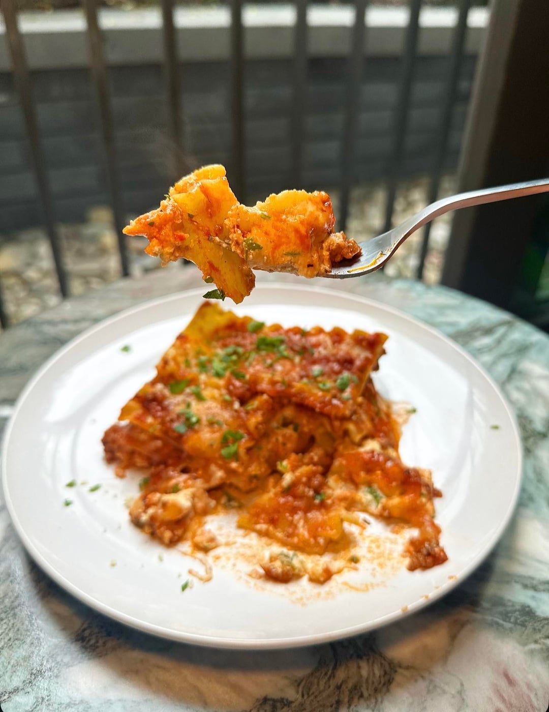 Set oven to 375°. Boil lasagna noodles until half cooked. Drain and set aside.