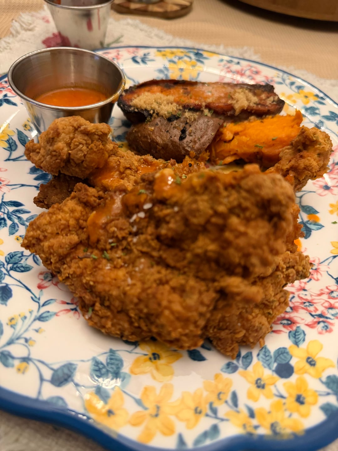Photo 3: Homemade Chicken Strips and Sweet Potato. 9/10. Super crispy, salty, and the sweet potato was nice too.