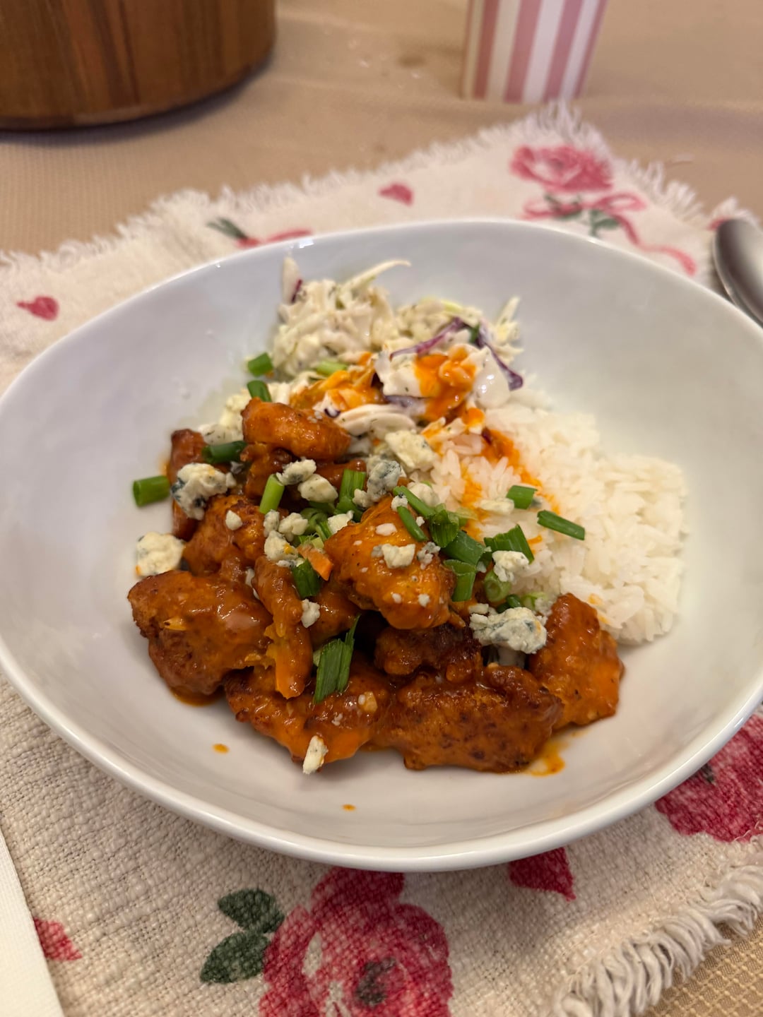 Photo 4: Buffalo Chicken and Rice with Slaw. The chicken and rice were so good. I think the blue cheese was unnecessary here. 8/10.