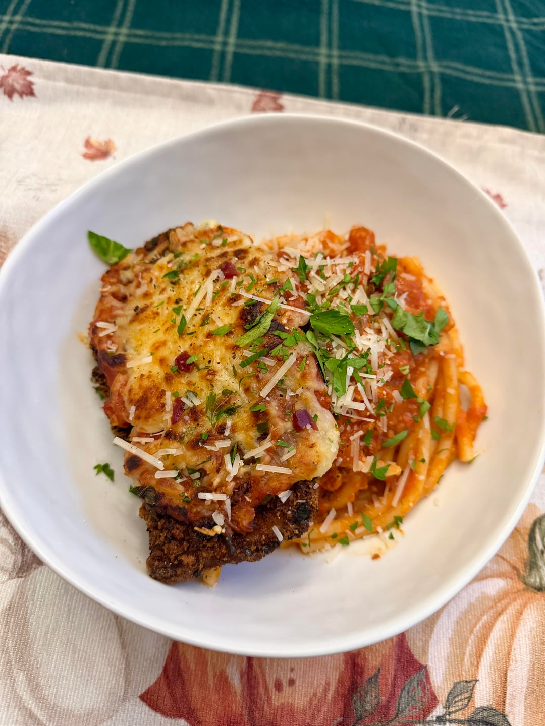 Photo 1: Bucatini Amatriciana with Chicken Parm. 9/10. Fresh Mozz would make it a 10/10 but with grocery prices I used the store brand mozz I had in the fridge!