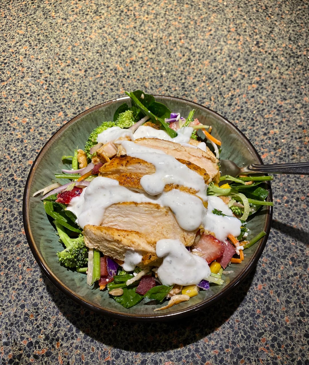 Chicken something salad with Greek yogurt ranch by AbnormallyGrey6824 Dinner Tonight Tonight's Dinner
