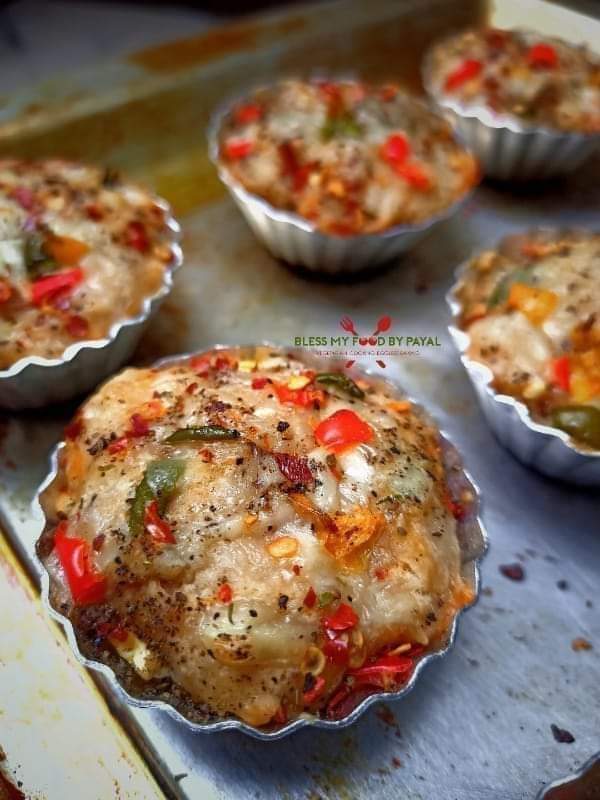 Savoury muffins made using whole wheat flour, veggies and pizza flavour are so cheesy and overloaded with deliciousness that you can’t stop at one.