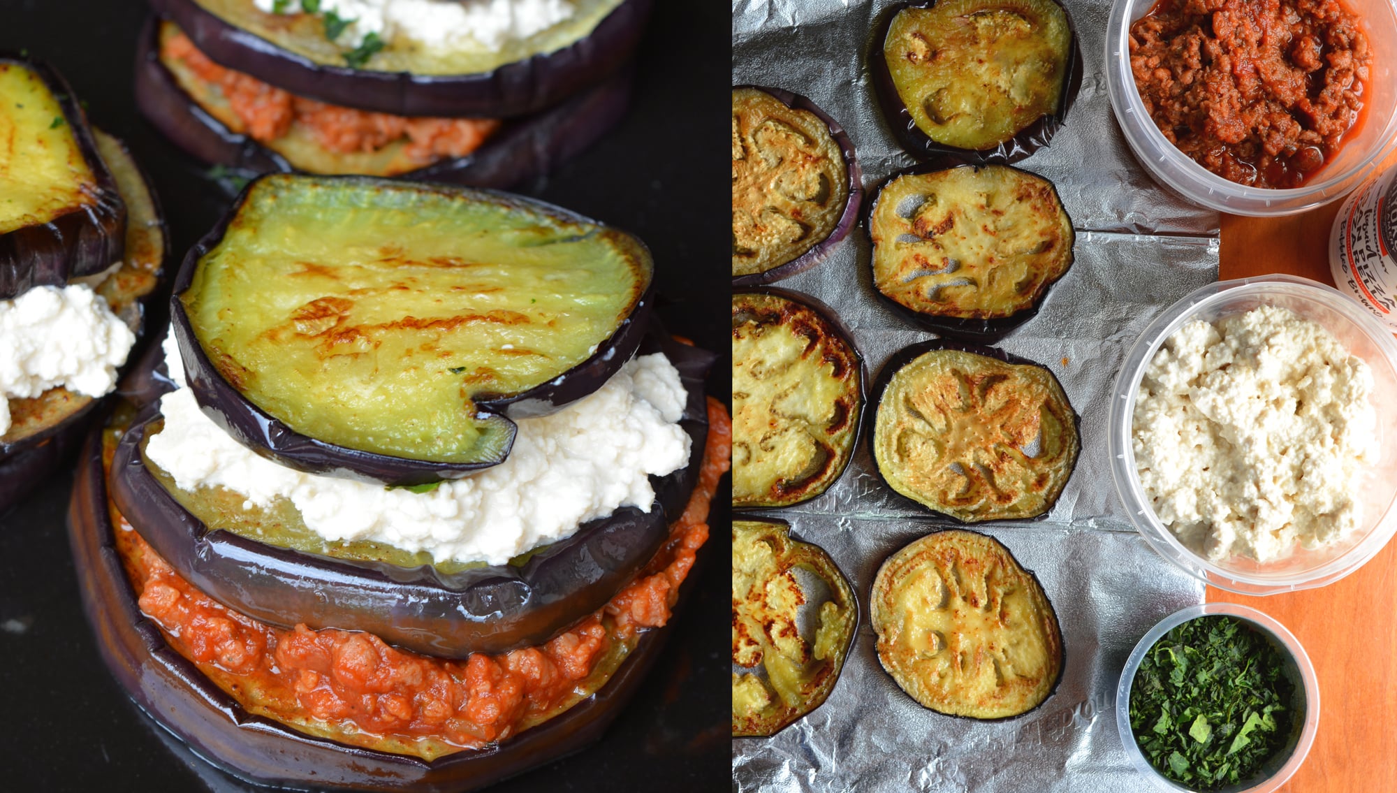 Eggplant Lasagna Stacks featuring my lastest creation of low calorie higher protein vegan ricotta that tastes better than regular dairy ricotta. And it’s EASY to make.