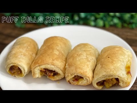 Take the pastry sheets (I have used pepperidge farm puff pastry sheets) and fill in the stuffing. Follow the instructions on the pasty sheet packet. Preheat the oven and then add the puff rolls and bake it.
