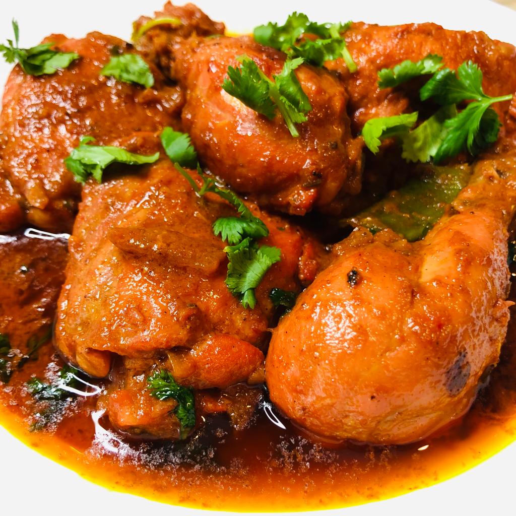 Melt Butter Ghee in a heated wok and add Cooking Oil. Sauté Chicken pieces in the wok until turns light golden brown. Take out sautéed Chicken in a bowl and rest it aside. Now add Bay Leaves, Cinnamon & Cardamoms to the wok and sauté for a minute. Add sliced Onions and sauté until caramelised. Add chopped Green Chillies, Ginger Garlic paste and chopped Tomatoes. Add Salt and mix it well. Simmer for 2 minutes and add sautéed Chicken pieces. Mix it well and add Kashmiri Chili Powder, Turmeric Powder, Fennel Seeds Powder, Curry Powder & Whole Cumin. Add half cup of hot water and mix it well. Add Yoghurt and mix it well. Cover and simmer for 10-12 minutes. Add Fresh Coriander and simmer for 2 more minutes. Put off the flame. Chicken Rogan Josh is now ready. Dish out in a bowl and serve with Naan or Steamed Rice… Enjoy 😋