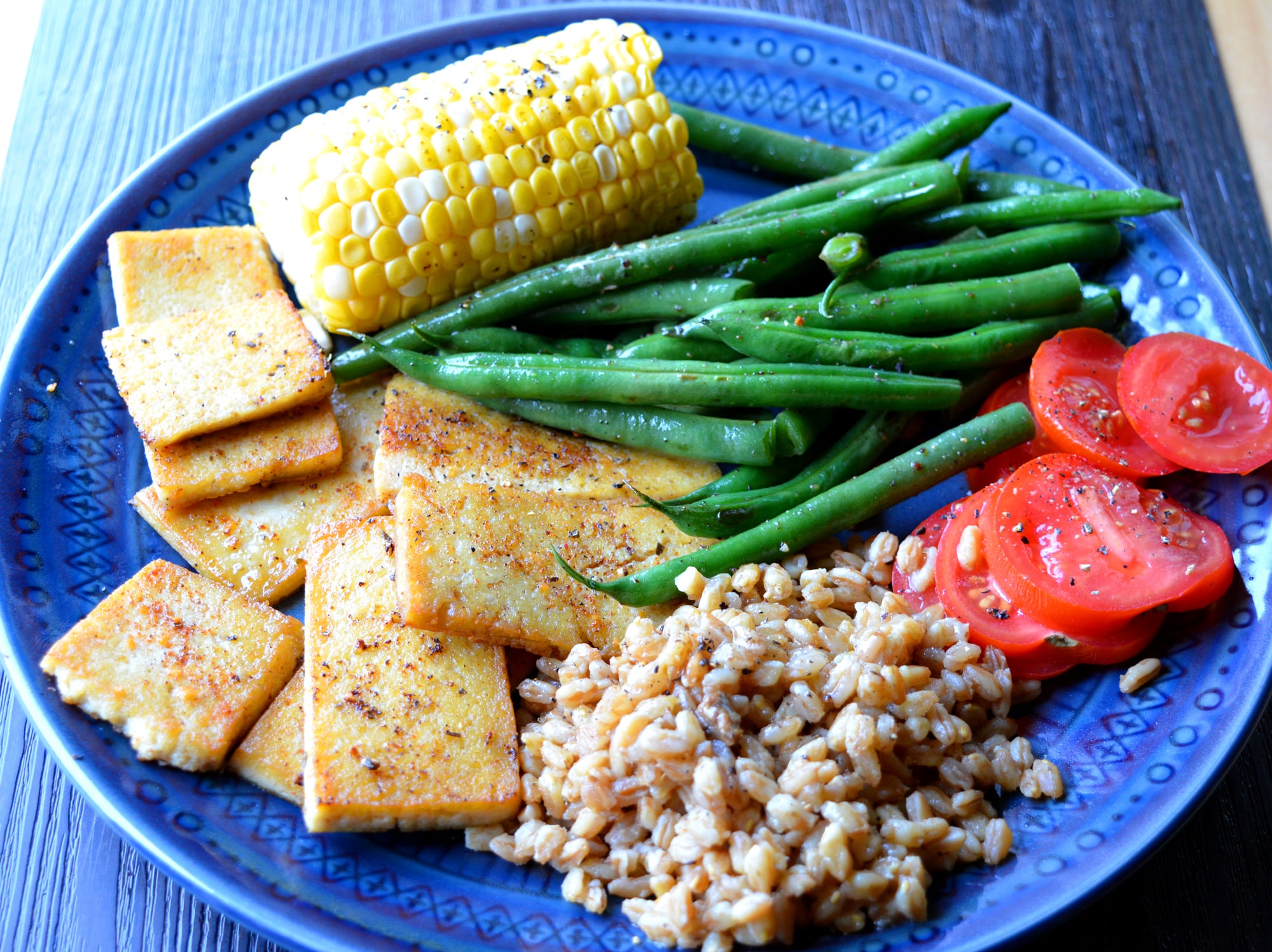 (39 g protein, 338 cals) Seasoned fava bean tofu (soy-free), mushroom farro, green beans, tomato, corn on cob by theotherchase 1200 Calorie Vegan 1200 Calorie Vegan Diet 1200 Calorie Vegan Meal Plan 1200 Calorie Vegetarian 1200 Calorie Vegetarian Diet 1200 Calorie Vegetarian Meal Plan Vegan Vegan 1200 Calorie Vegan 1200 Calorie Diet Vegan 1200 Calorie Meal Plan Vegan 1200 Kcals Vegan 1200 Kcals a day Vegan 1200 Kcals per day Vegan 1200 Kilocalorie Vegan 1200 Kilocalorie a day Vegan 1200 Kilocalorie per day vegan1200isplenty Vegetarian