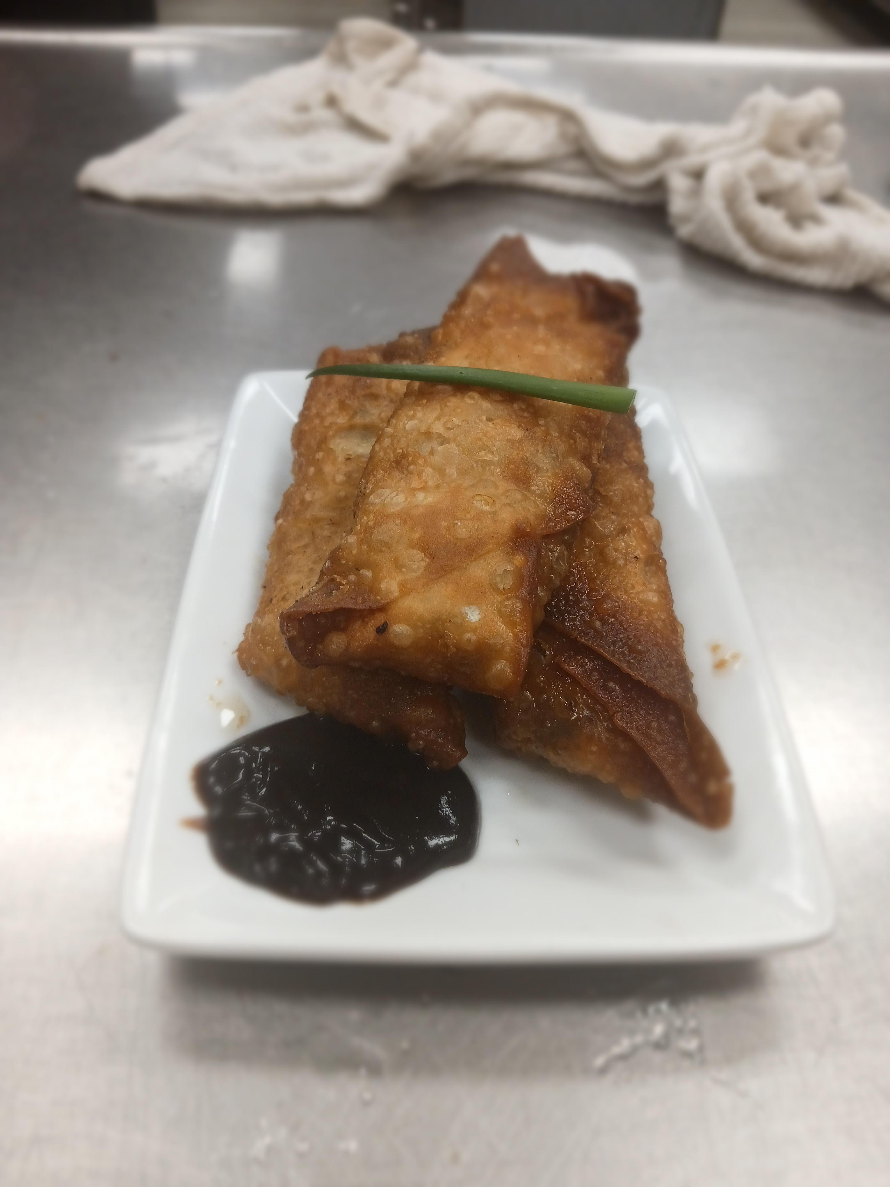 I made these springrolls for an assignment in culinary arts the springrolls are stuffed with honey soy marinaded chicken carrots, bok choy and green onion