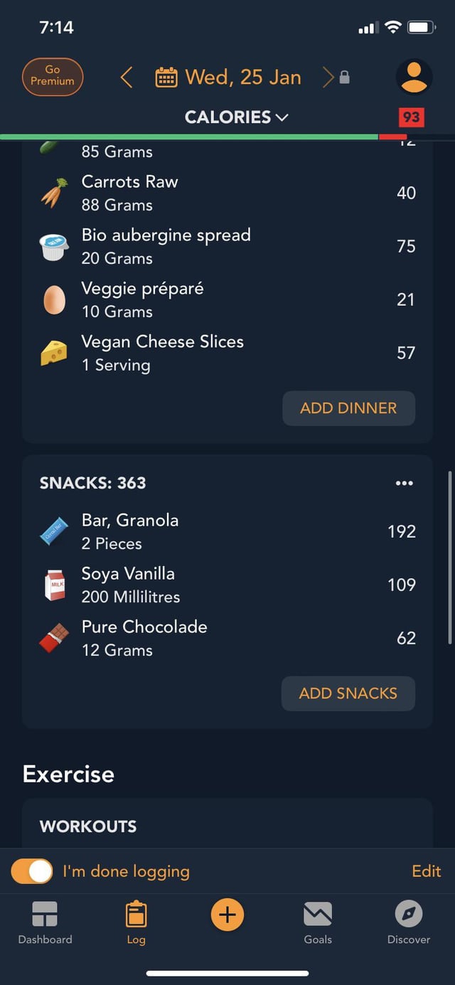 Snack at 4 pm: heated up Alpro’s vanilla soy milk with 12 grams of dark chocolate to make chocolate milk
