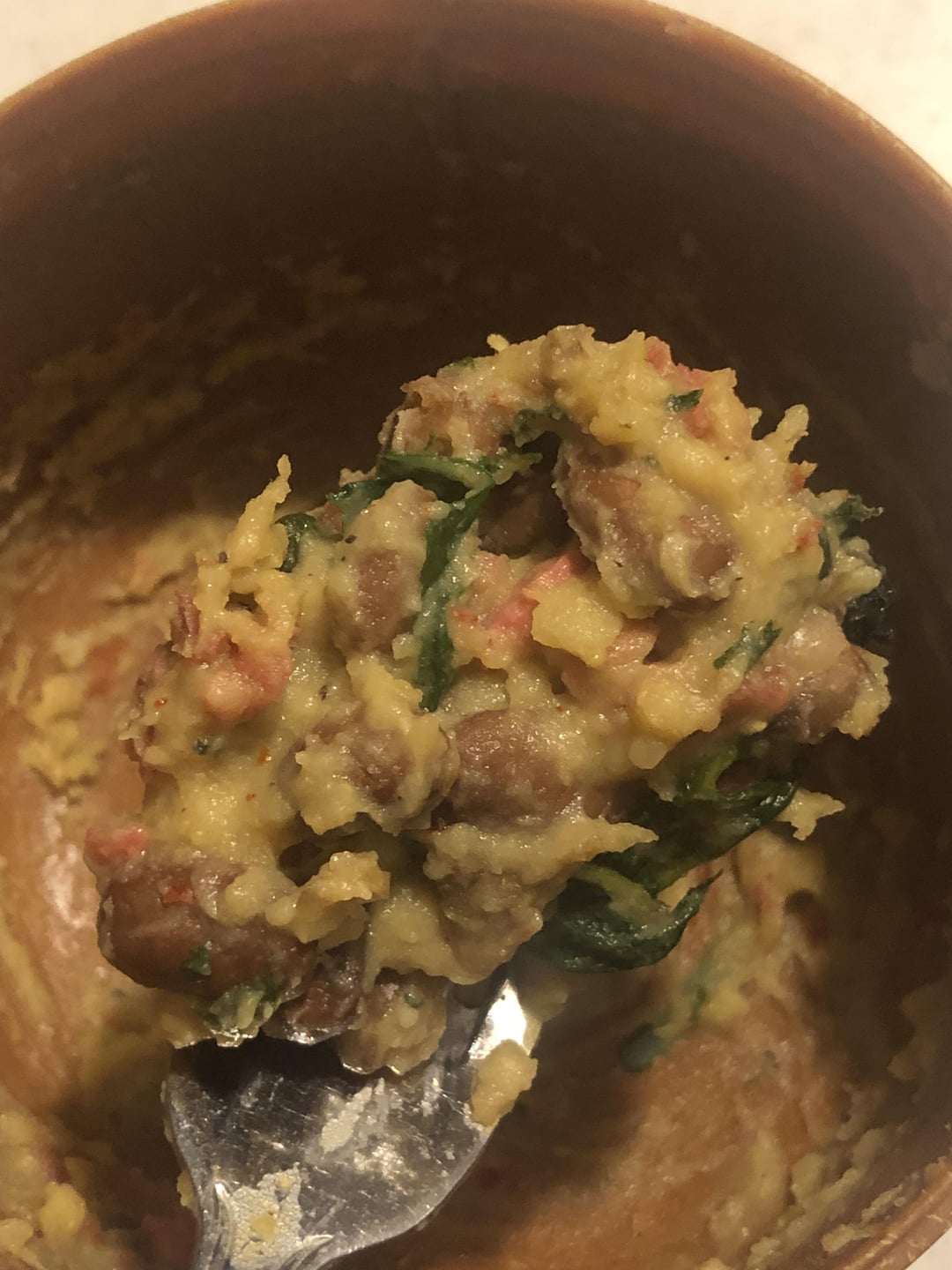 Potatoes mixed with the last bite of hummus
