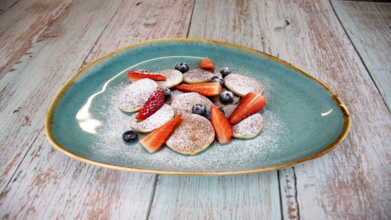 Cook the mini pancakes for 1-2 minutes on each side, or until golden brown