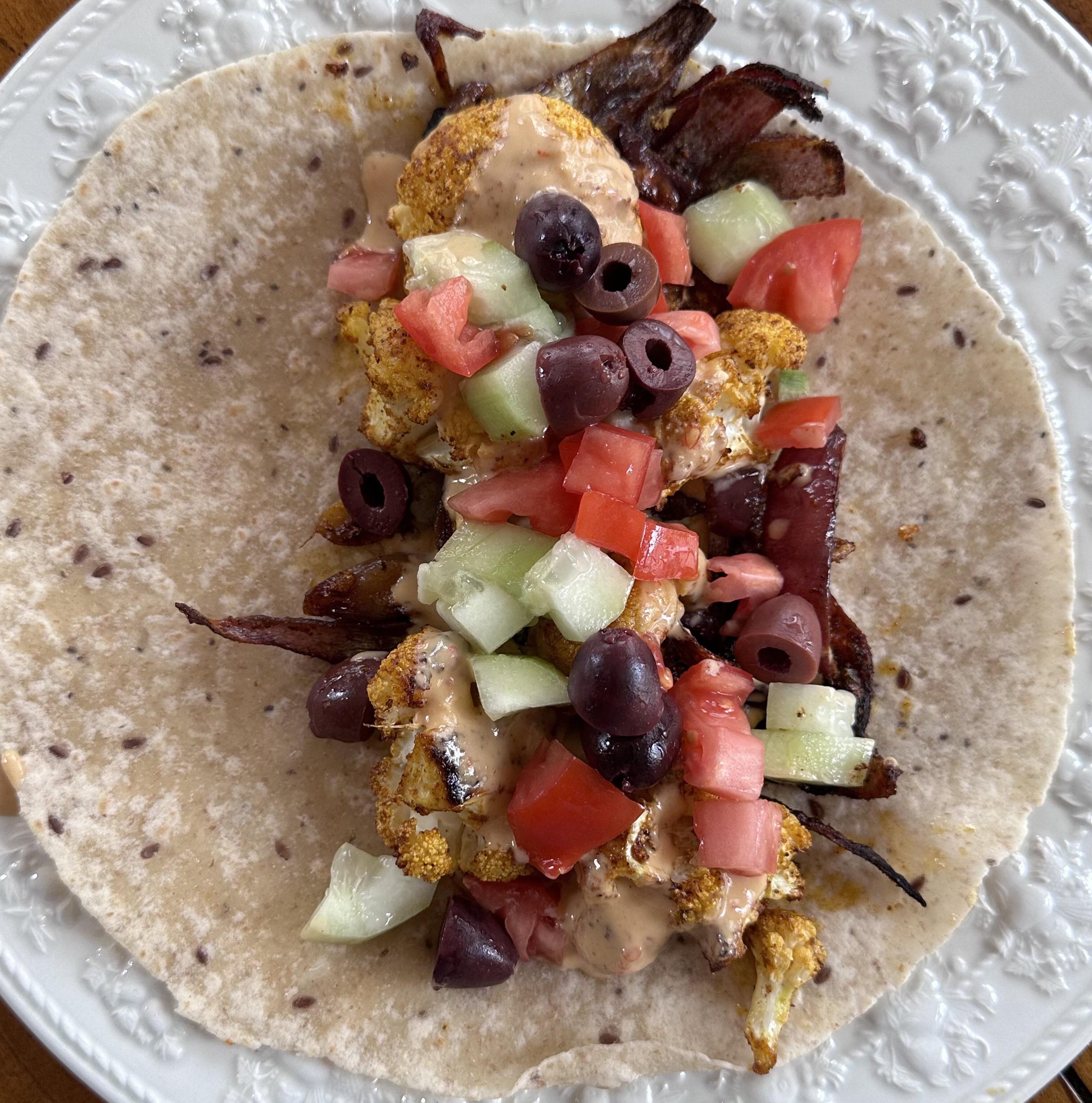 I watched Melissa Clark make this the other day and it looked so good I had to give it a try. It is fairly easy…as long as you have all the ingredients. https://cooking.nytimes.com/recipes/1023019-cauliflower-shawarma-with-spicy-tahini. You should put it on pita bread, but I’m celiac, so a GF tortilla worked just fine. It was REALLY good.