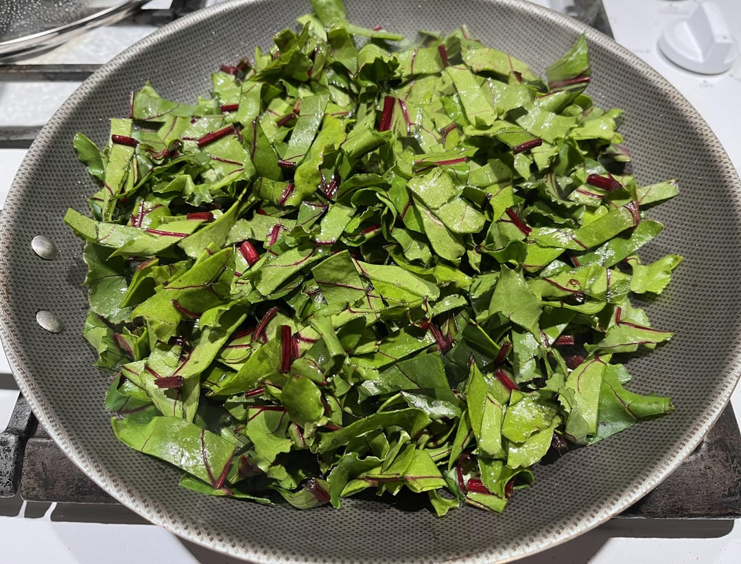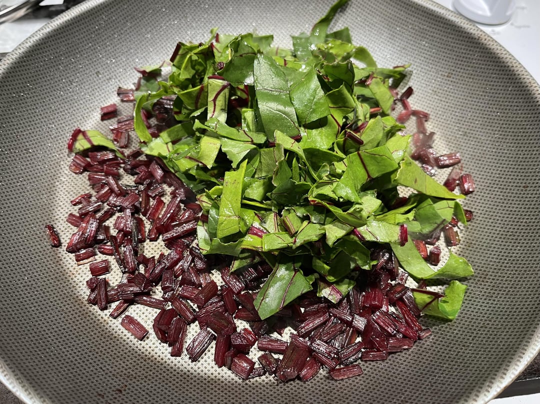 Beet stems & greens/leaves— of one bunch. (I’m only using stems and leaves for this, not the roots)