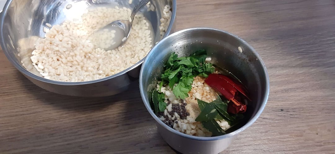 1. The veg thali I posted [last time](https://www.reddit.com/r/vegetarian/comments/116qr4s/veg_thali_rajma_masala_masoor_dal_mattar_pulao/) was North Indian. Today for lunch I went with foods from the South. Clockwise from the top: