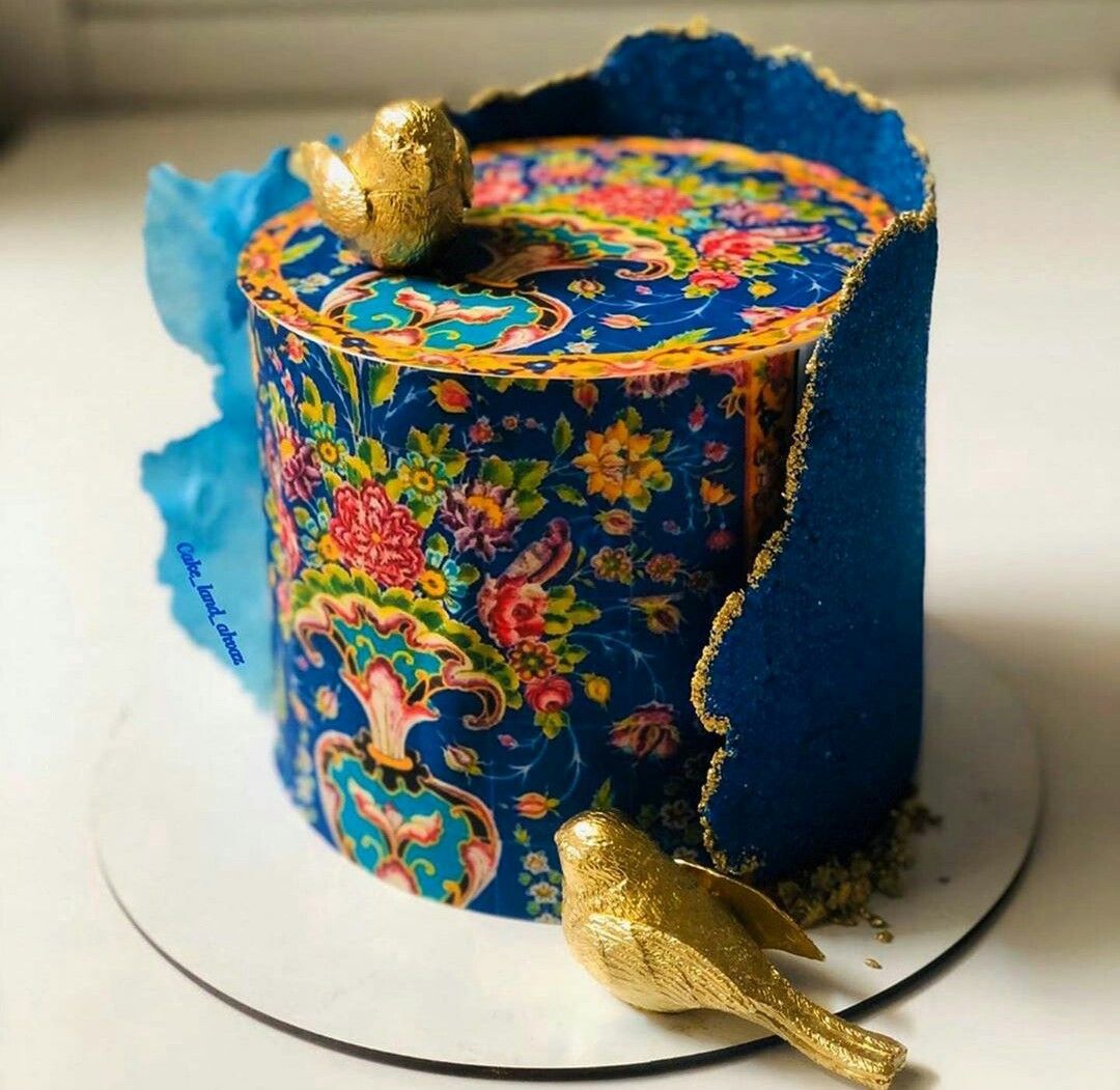 [Found] Blue cake with golden birds, another proof that elves are great artists by Affectionate_Fox_288 Culinary Culinary Porn