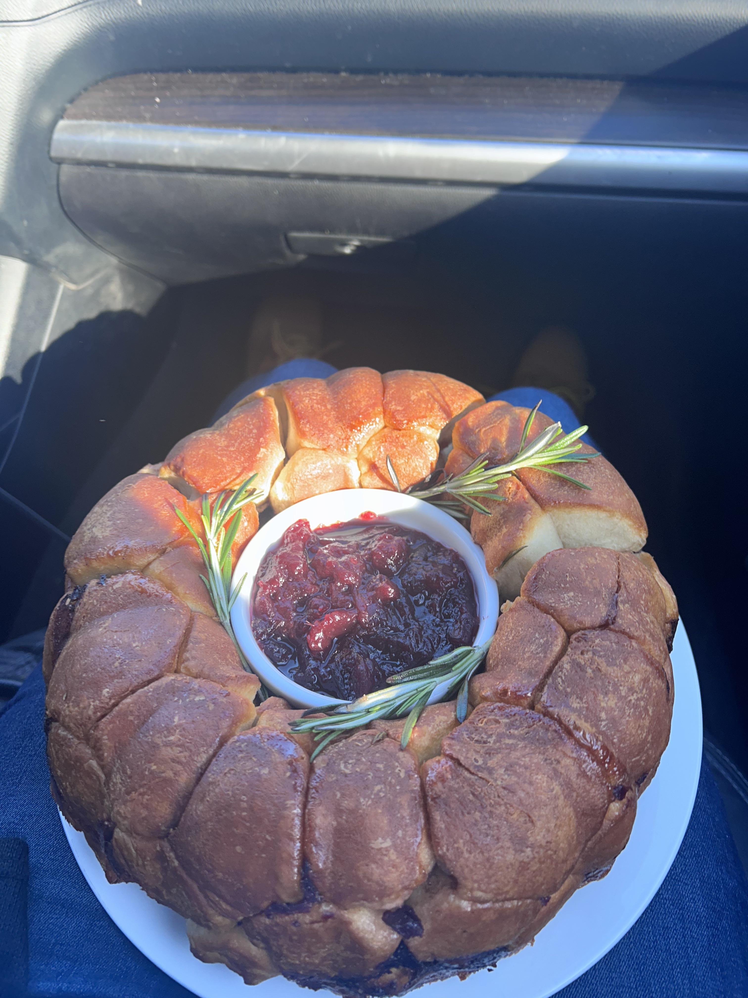 Pull apart Brie stuffed monkey bread was gone in 5 minutes. Only pic I had was when traveling to cousins house. Keeper recipe. by CatLasagna1984 Appetizer Appetizers