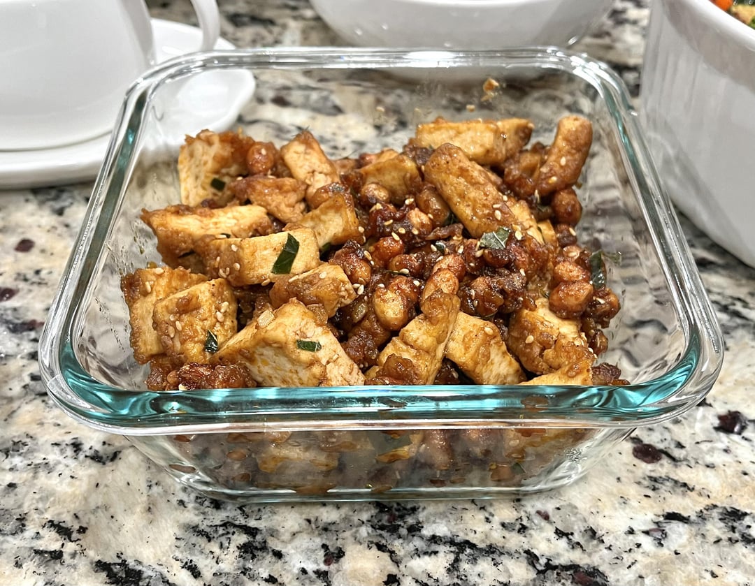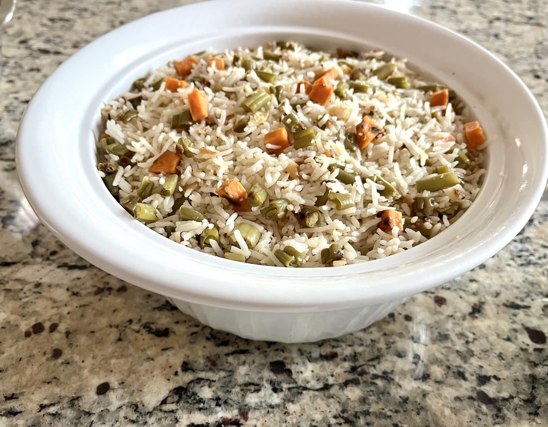 This looks really good! I’m especially intrigued by the green bean sweet potato rice. Also, what’s the red-orange stuff on top of the rice in the plate of the pic?