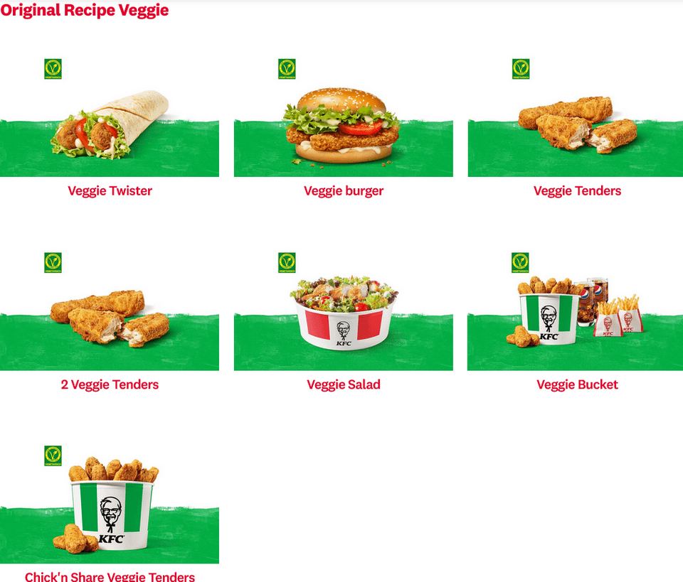 mcdonalds, KFC in Australia have no veg options. Our Burger King. We call Hungry Jacks has 2 whoppers, one with fake meat & one with a veggie patty.