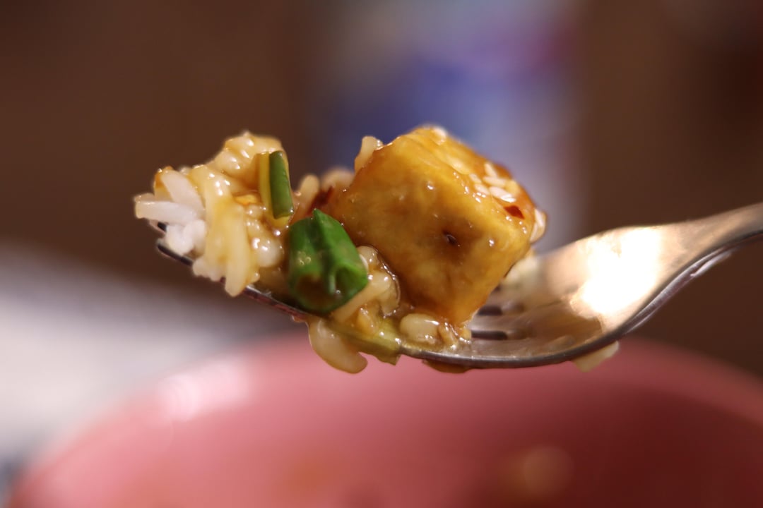You can make the tofu however you want. A shallow fry would work great. I like to bake it, because I’m a little lazy. I toss it in some corn starch and oil, spread the cubes out on some parchment paper on a baking sheet, and bake it at 350F for ~45-50 minutes, flipping half way through. The corn starch makes it crispier, but it’s honestly optional.